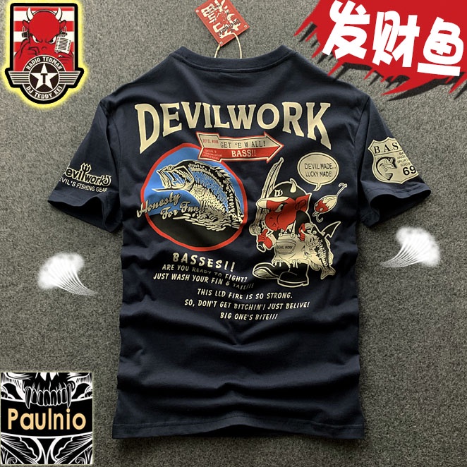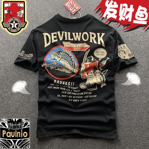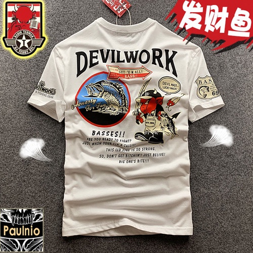 ((พร้อมส่ง ผ้าฝ้ายแท้) เสื้อยืดคอกลม แขนสั้น พิมพ์ลายการ์ตูนปีศาจ ตกปลา สไตล์ญี่ปุ่น อเมริกัน สตรีท ฮิปฮอป สําหรับผู้ชาย
