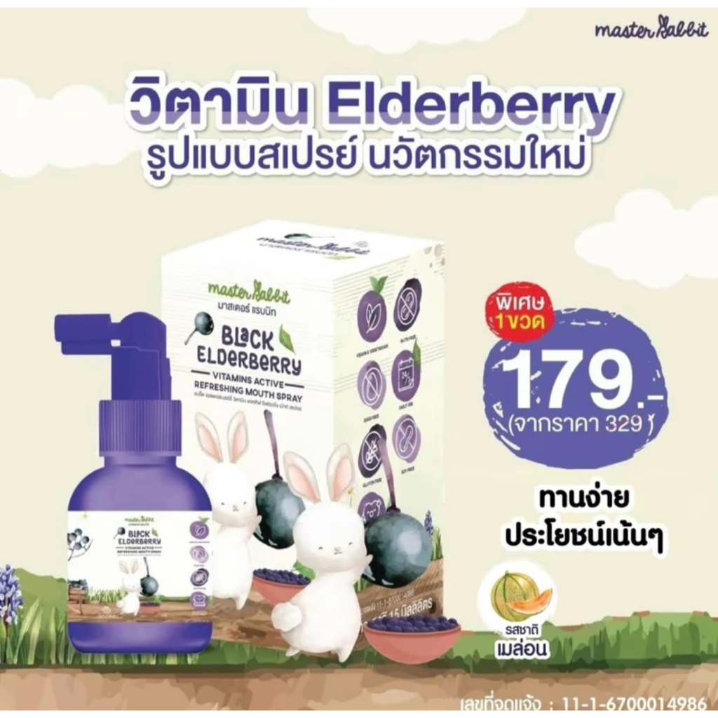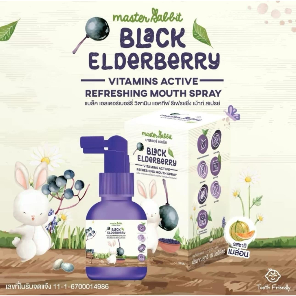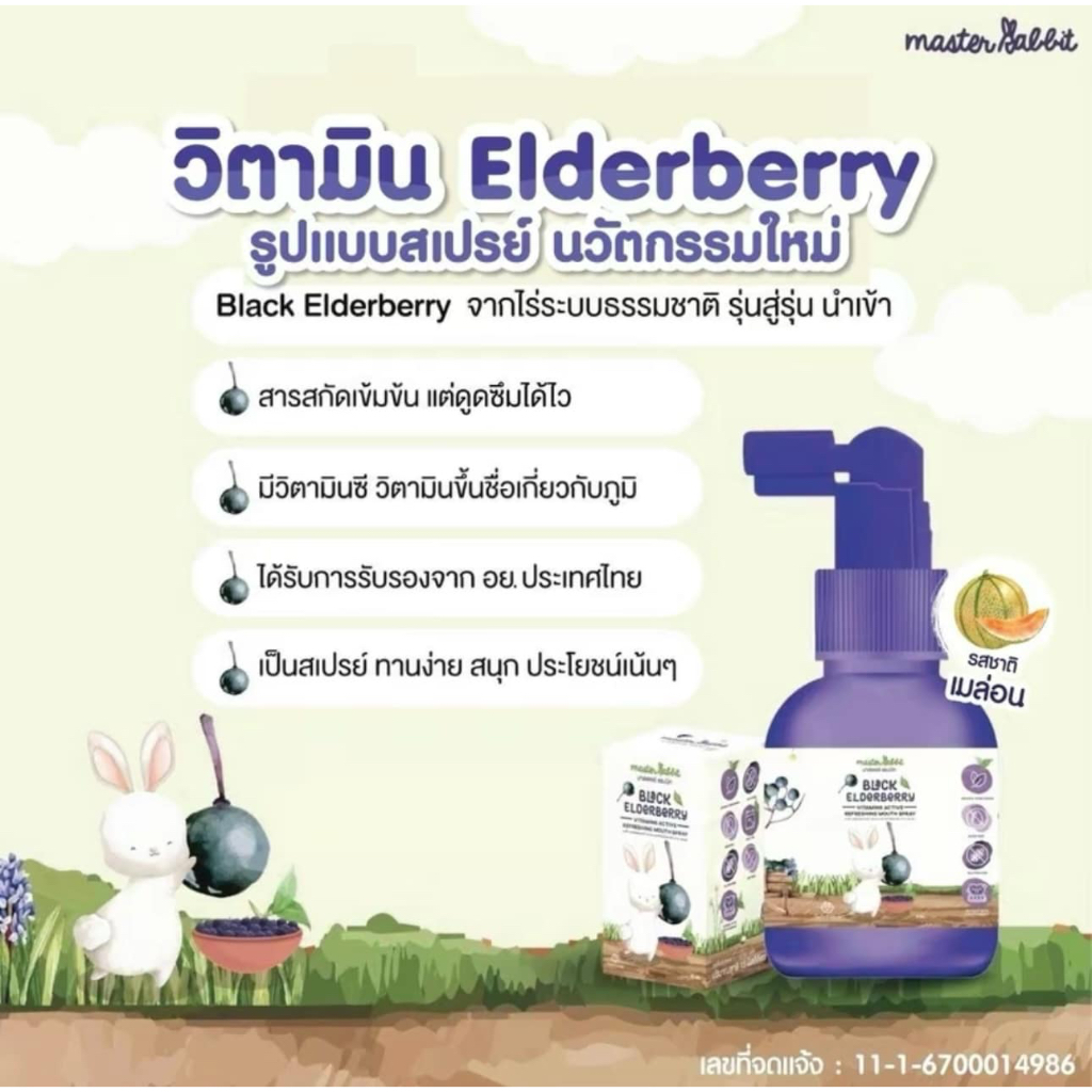 (ส่งด่วน/ส่งทันที🔥) โพรโพลิส สเปรย์พ่นคอ Master Rabbit Propolis แบล็กเอลเดอร์เบอร์รี่ Black Elderber