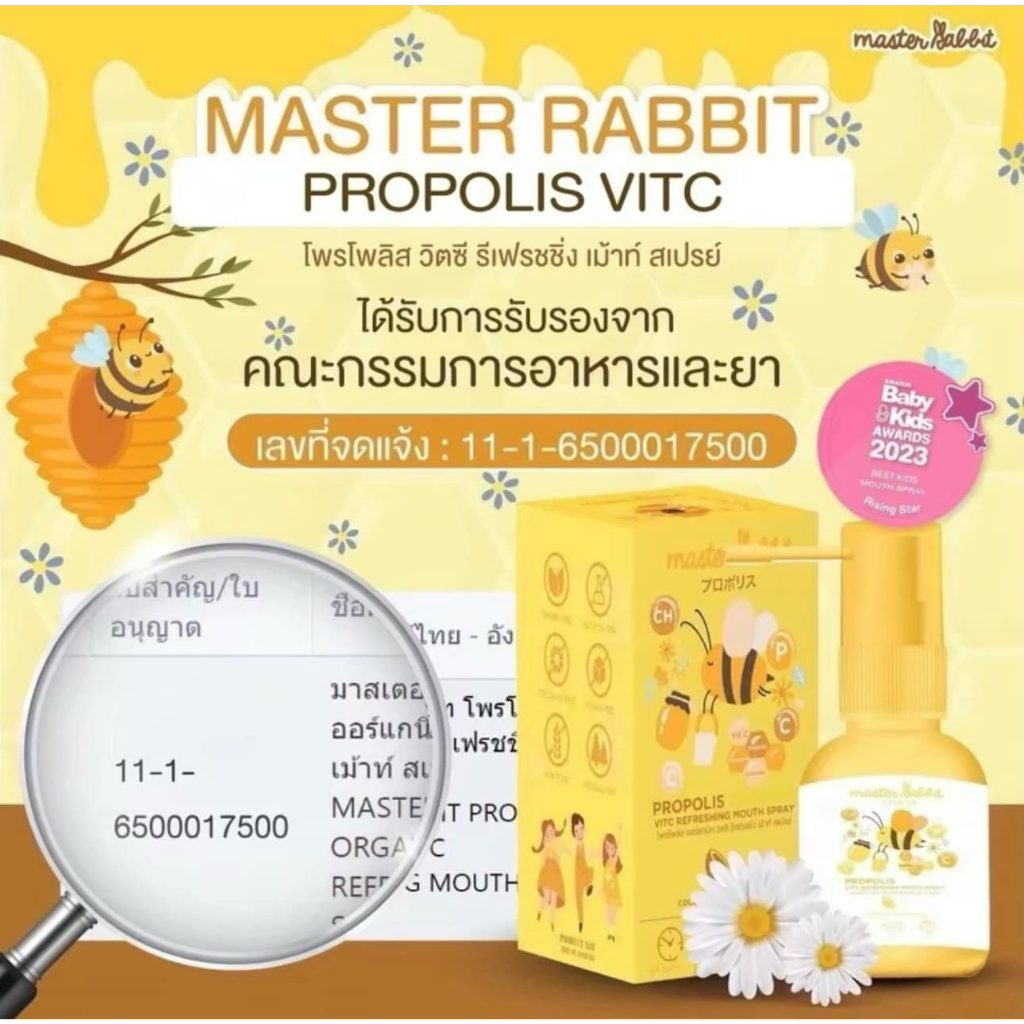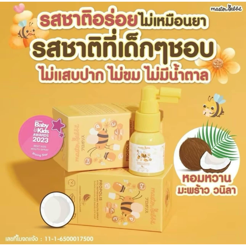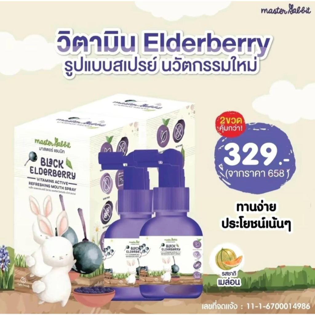 (ส่งด่วน/ส่งทันที🔥) โพรโพลิส สเปรย์พ่นคอ Master Rabbit Propolis แบล็กเอลเดอร์เบอร์รี่ Black Elderber