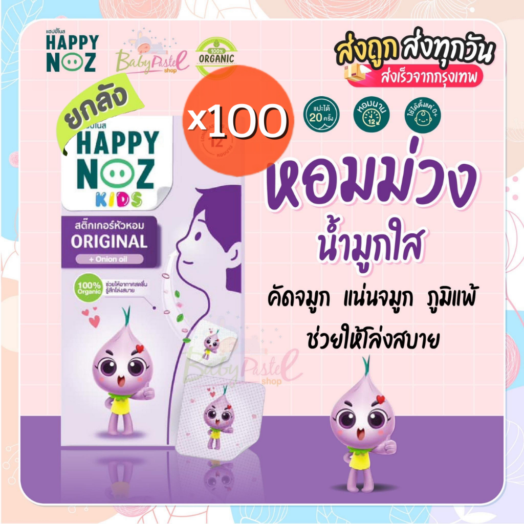 (ส่งด่วน/ส่งทันที🔥) Happy Noz สติ๊กเกอร์หัวหอม แพค 100 กล่อง สุดคุ้ม พร้อมส่งทุกสีนะคะ