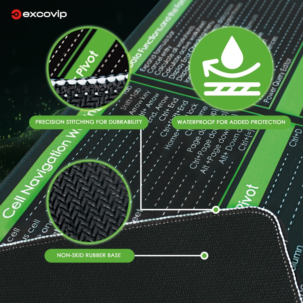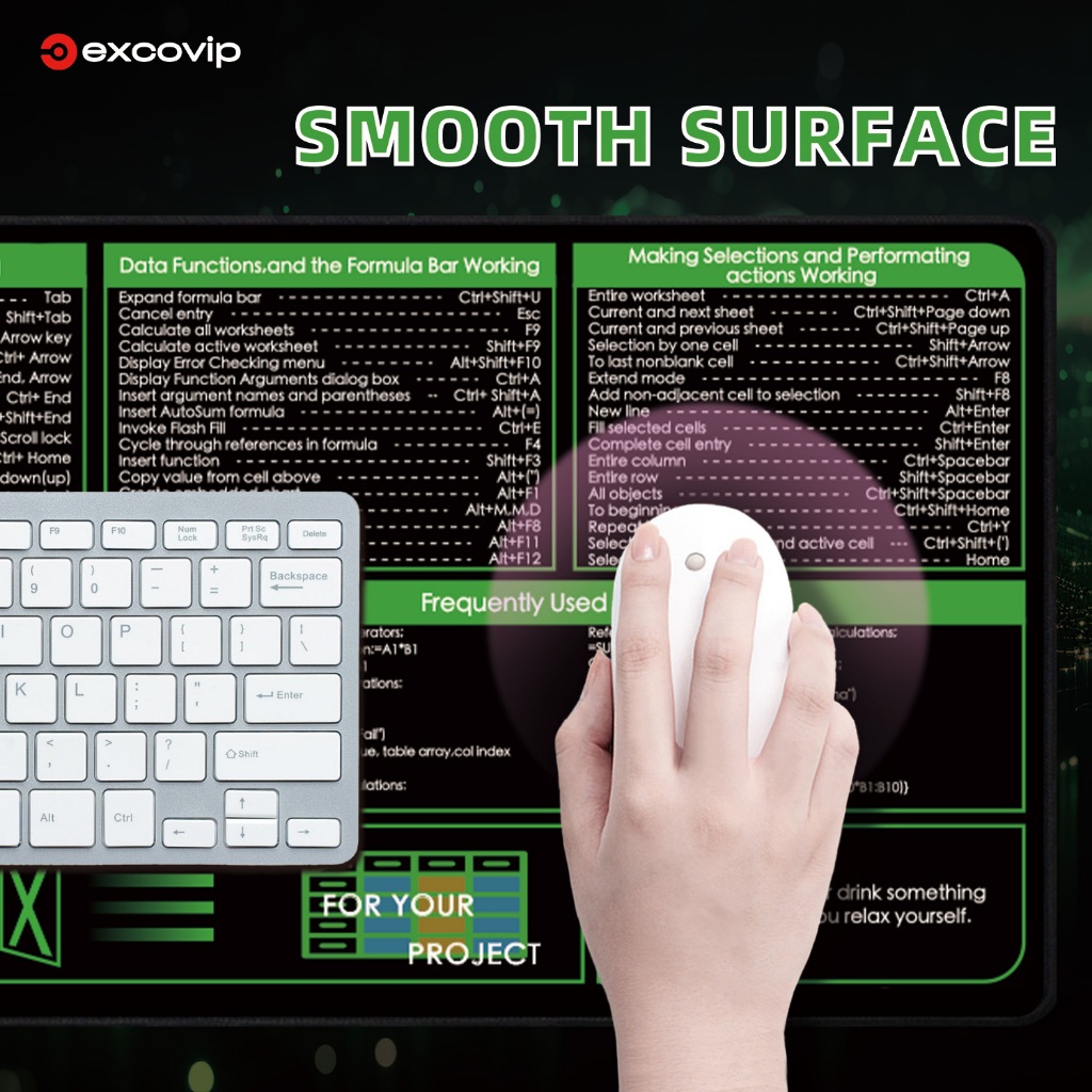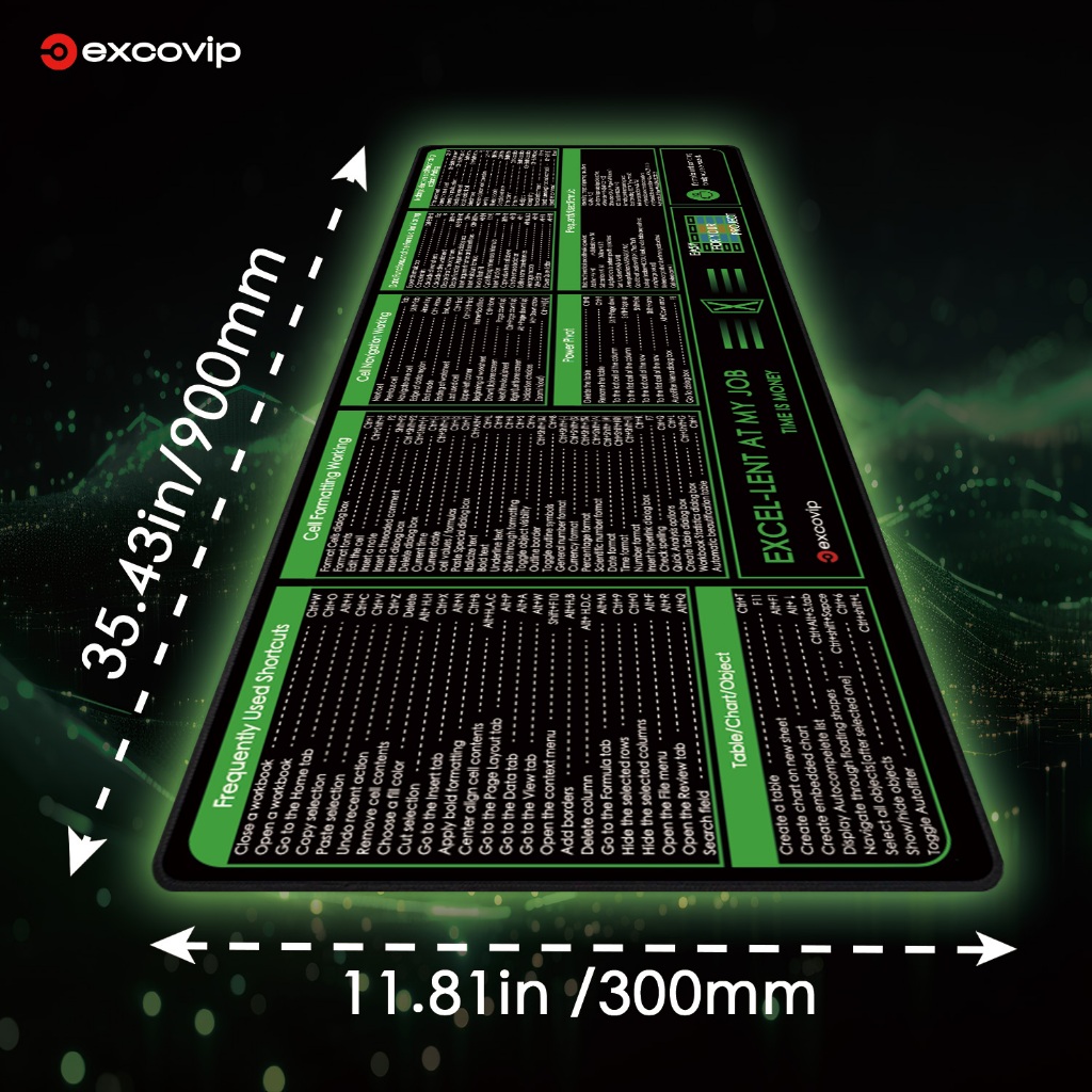 Excel ภาษาอังกฤษปุ่มลัดคีย์บอร์ดเมาส์ Pad ขนาดใหญ่นุ่มสบาย Seaming สวมใส่ Dirt-Resistant Anti-Slip คอมพิวเตอร์เดสก์ท็อปแล็ปท็อปสํานักงานการเรียนรู้เกมสีดําสีเขียว 90 * 30 ซม.ex