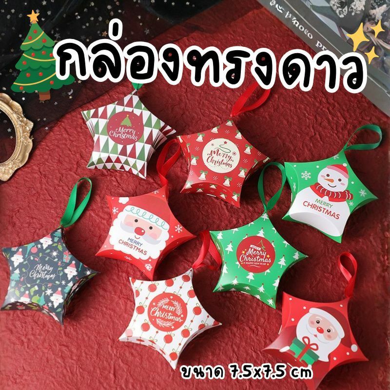 (ร้านไทย) 🌟กล่องใส่ขนม กล่องรูปดาว พร้อมริบบิ้นแขวน