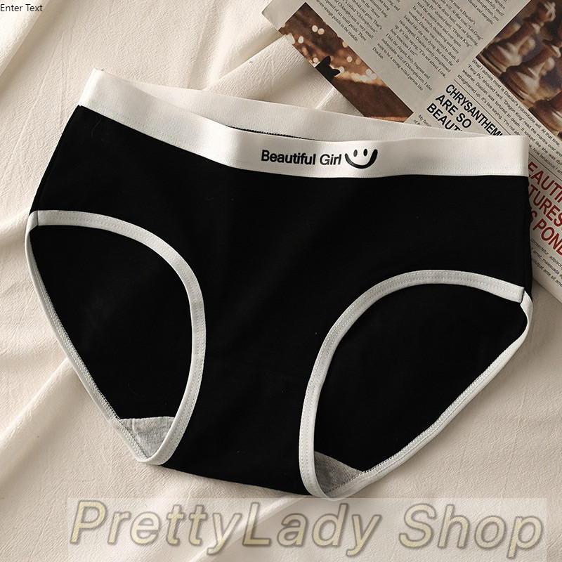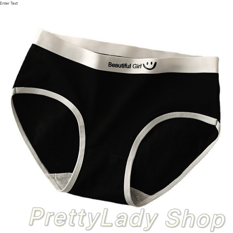 PrettyLady Shop (XWN087) กางเกงในผู้หญิง(ลายหน้ายิ้ม) เอวกลาง ใส่สบายผ้านุ่ม ระบายอากาศได้ดี
