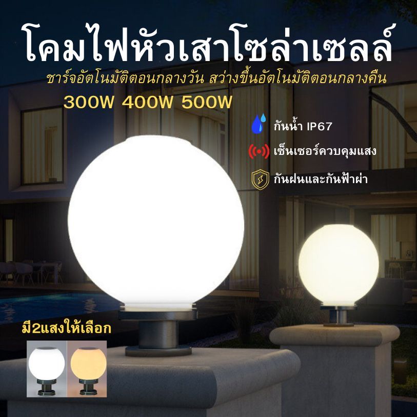 โคมไฟหัวเสา โคมหัวเสาโซล่าเซลล์ ไฟสวนหลอด โซล่าเซลล์ โคมไฟทรงเหลี่ยม กันน้ำ 2สี การควบคุมแสงอัจฉริยะ