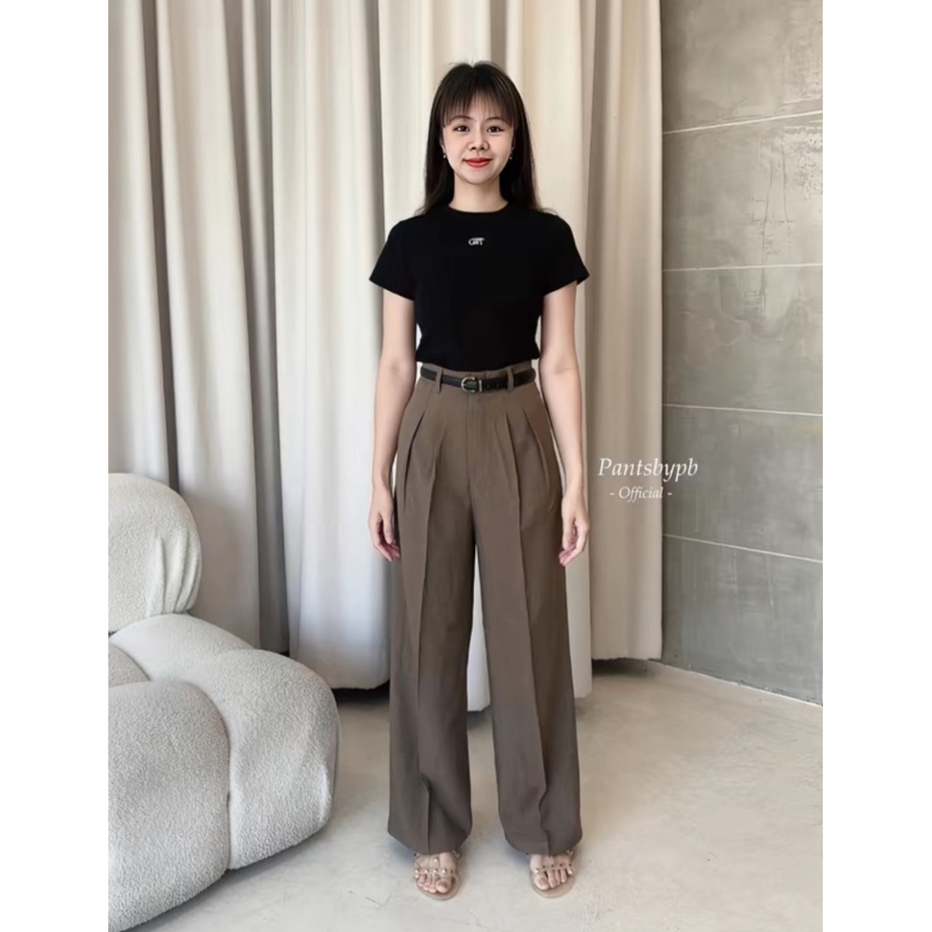 ส่งต่อ กางเกงกระบอกใหญ่สีโกโก้ ไซส์S จากร้านpantsbypb แต่งจีบ ผ้าสโนว์สลาฟ กระเป๋าเจาะความยาว 41 นิ้วใส่1ครั้งใหม่มาก