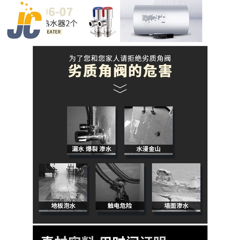 [เจซี] 304 สแตนเลสสามเหลี่ยมวาล์วร้อนและเย็นสากลห้องน้ําเครื่องทําน้ําอุ่นก๊อกน้ําท่อน้ําเข้าวาล์วแปดตัวอักษรหยุดน้ํา โวลต์