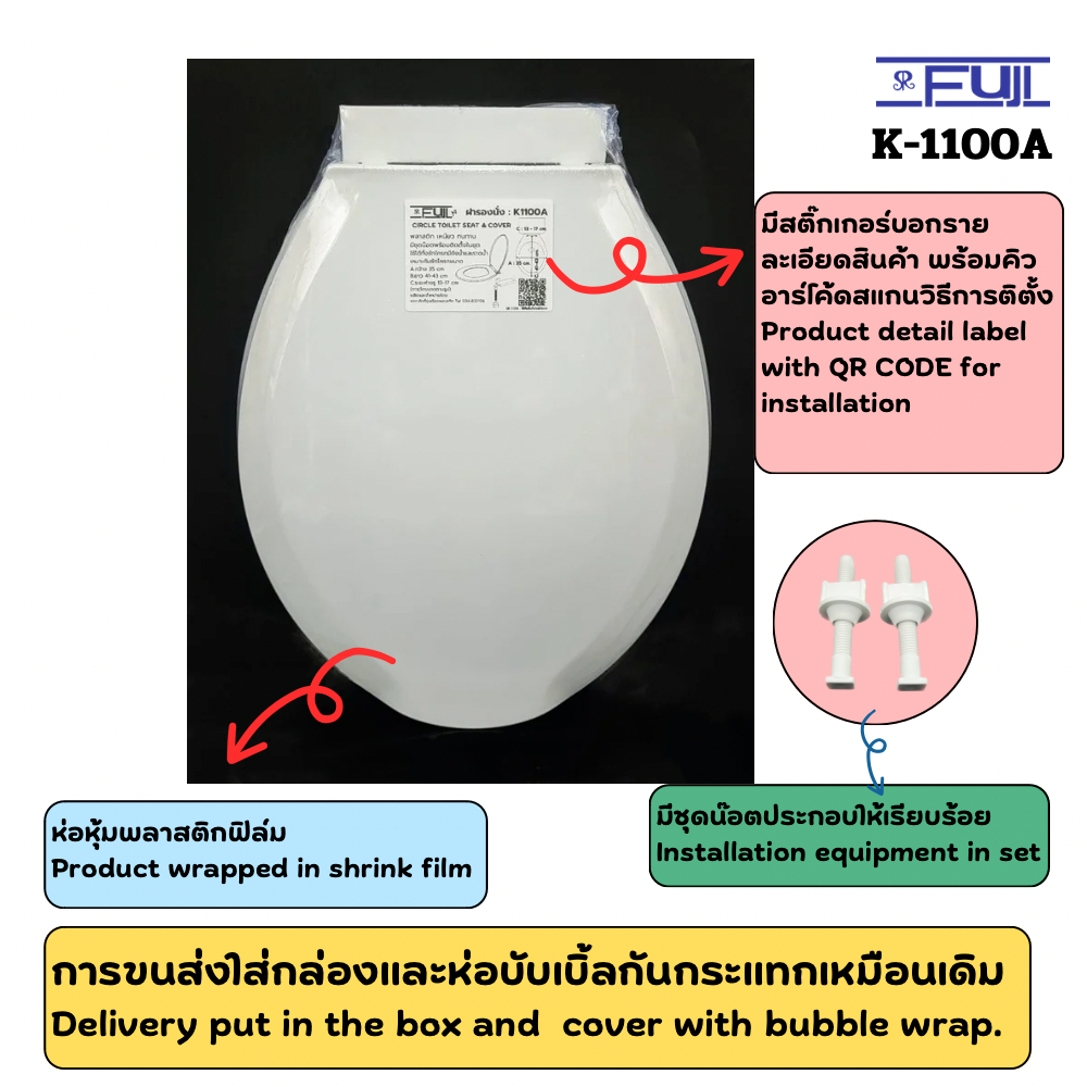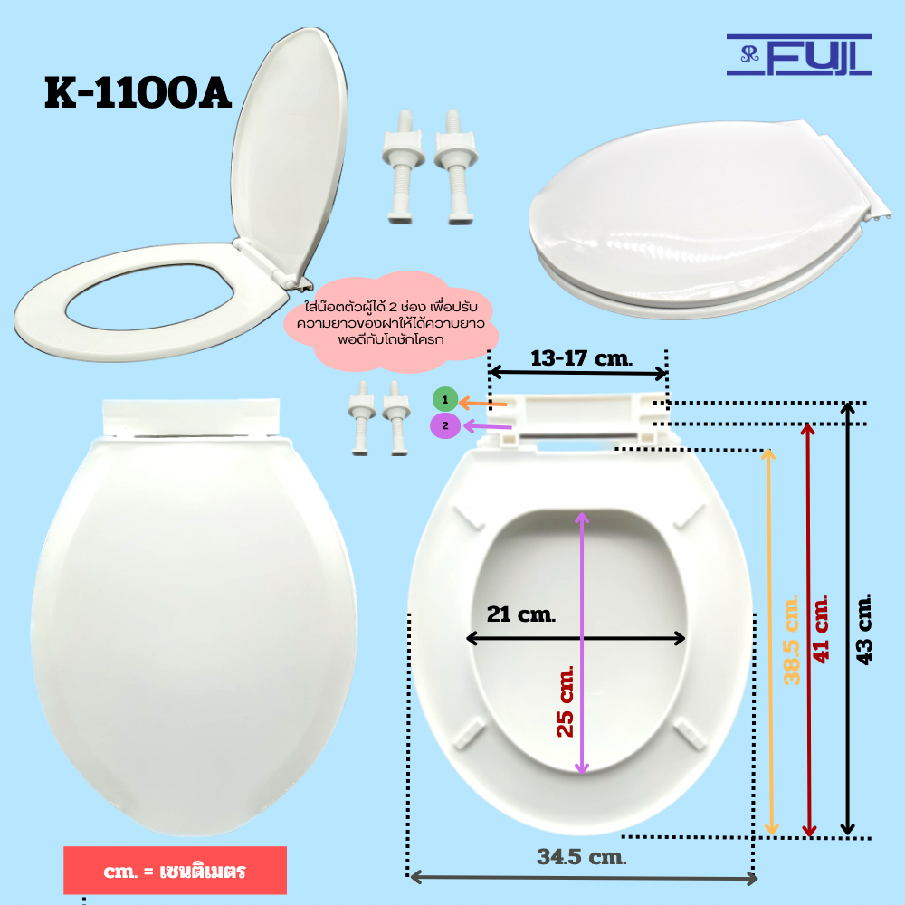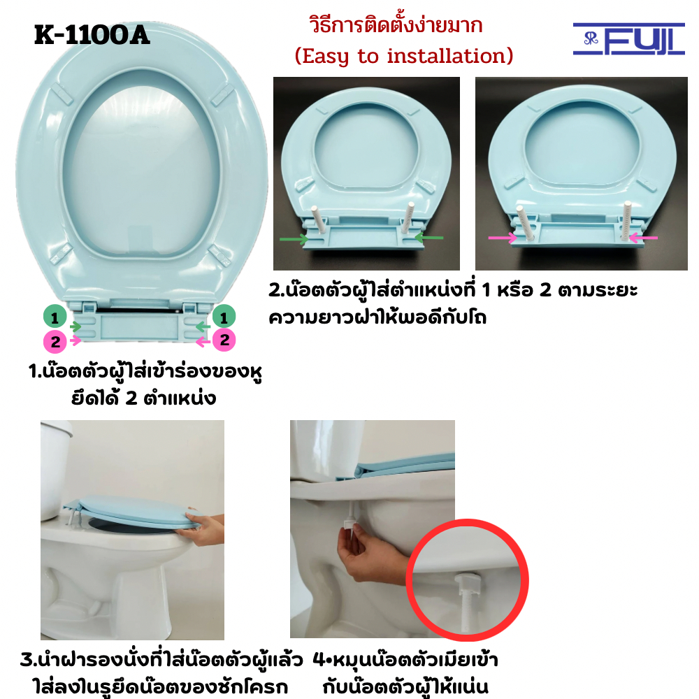 ฝารองนั่งชักโครก Fuji รุ่น K-1100A ✔✔✔ ถูก สวย (มีชุดน๊อต) ใช้ได้ทั้งชักโครกราดน้ำและแบบมีถังกดน้ำ