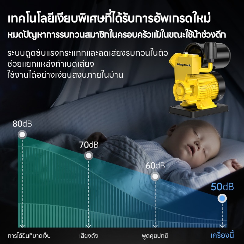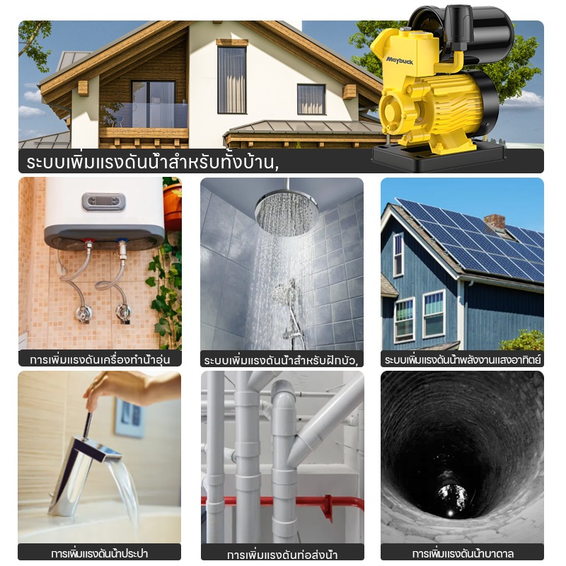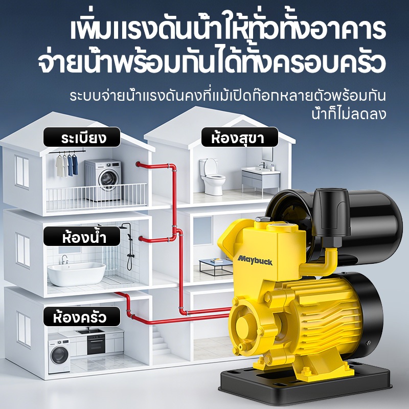 Maybuck Japan ปั๊มน้ำออโต้ 1280W ปั๊มเพิ่มแรงดันในครัวเรือน ปั๊มรองพื้นตัวเอง