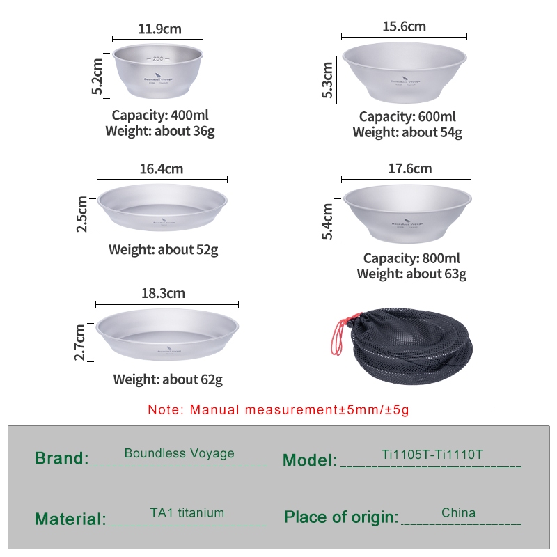 Boundless Voyage- ชุดจาน ชาม ไทเทเนียม โลหะ น้ําหนักเบา สําหรับตั้งแคมป์ กลางแจ้ง ท่องเที่ยว บนโต๊ะอาหาร ห้องครัว