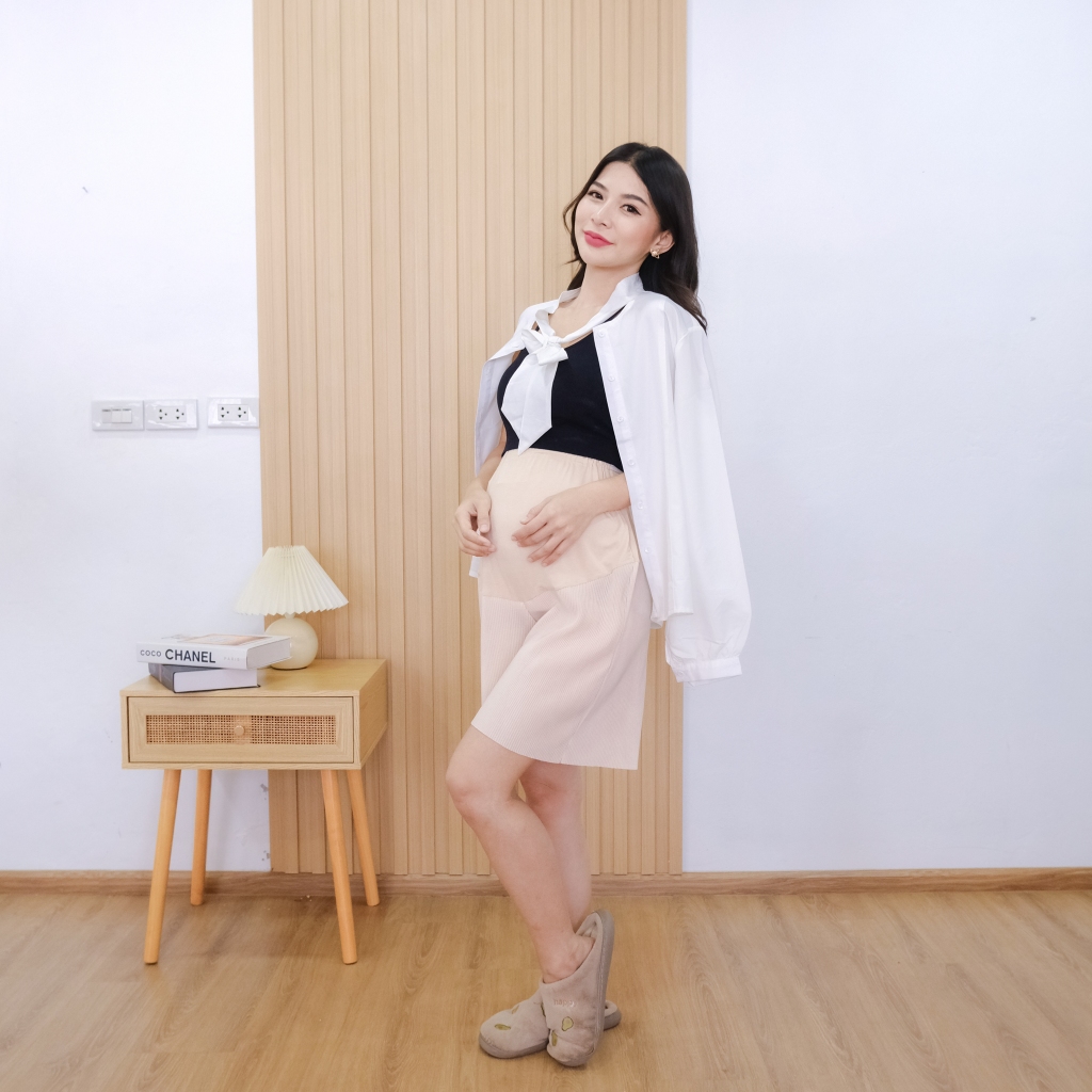 PANDA กางเกงคนท้อง ขาสั้นผ้าอัดพลีท