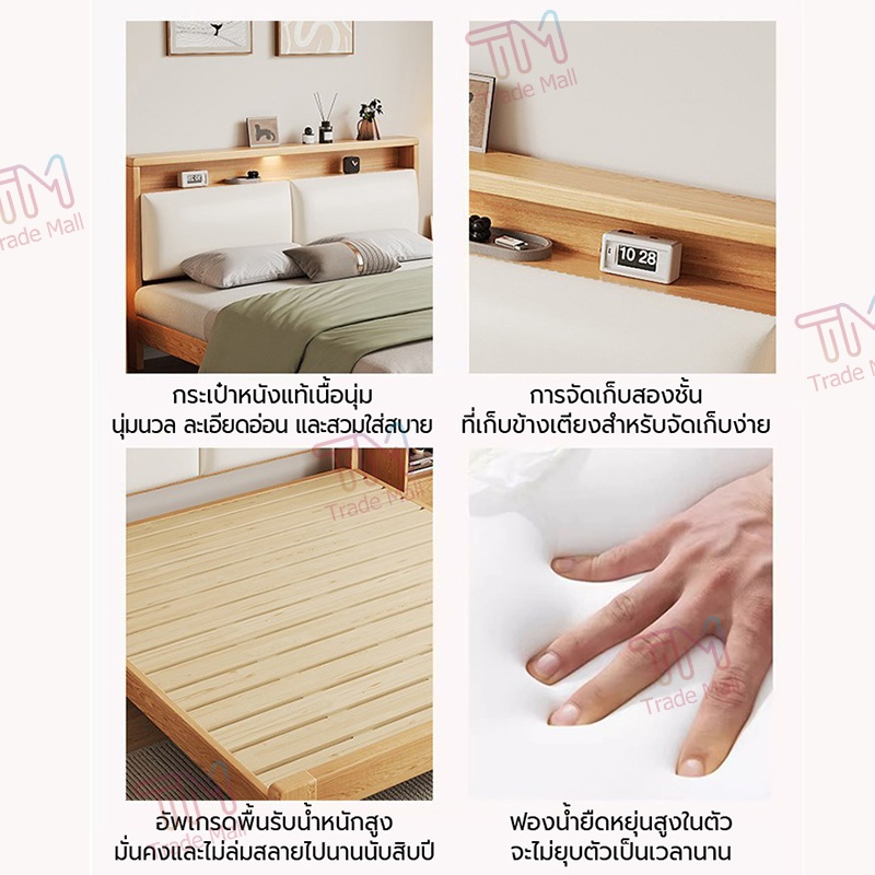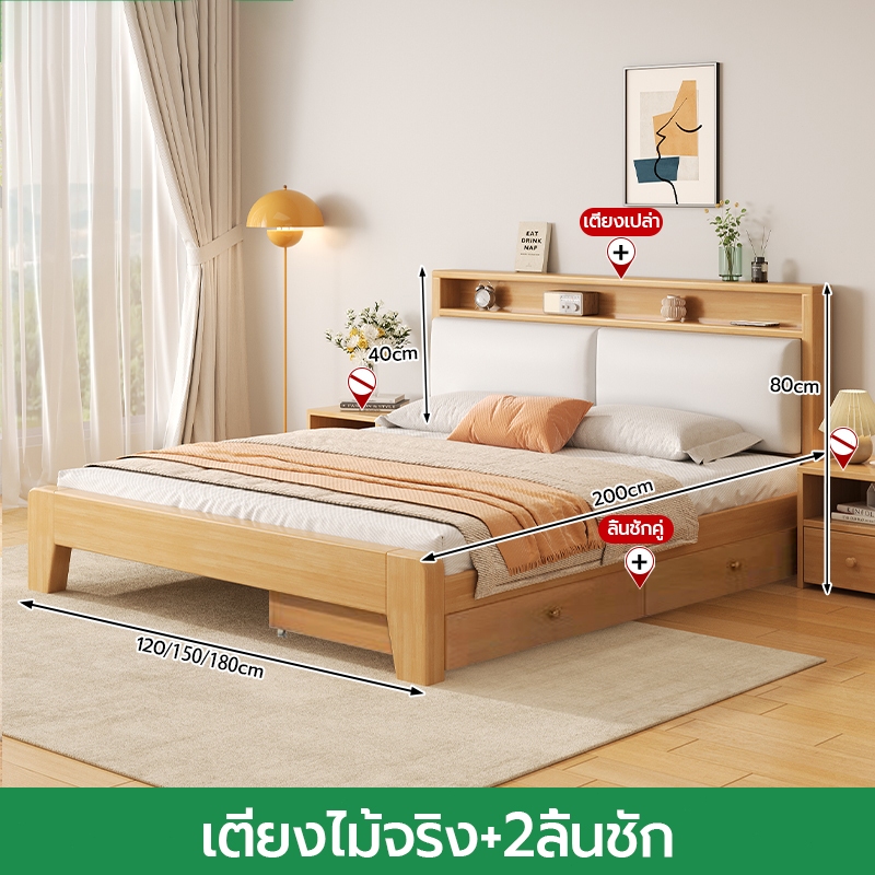 เตียง เตียงไม้ 4/5/6 ฟุต พร้อมช่องเก็บของแล เตียงไม้แท้ ไม้สนข ทำจากไม้คุณภาพดี