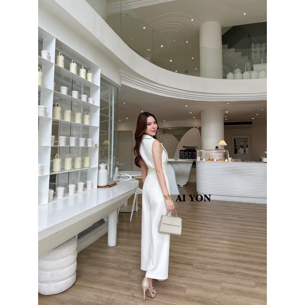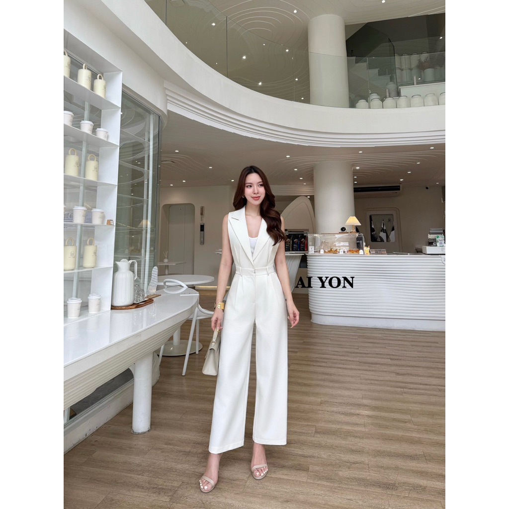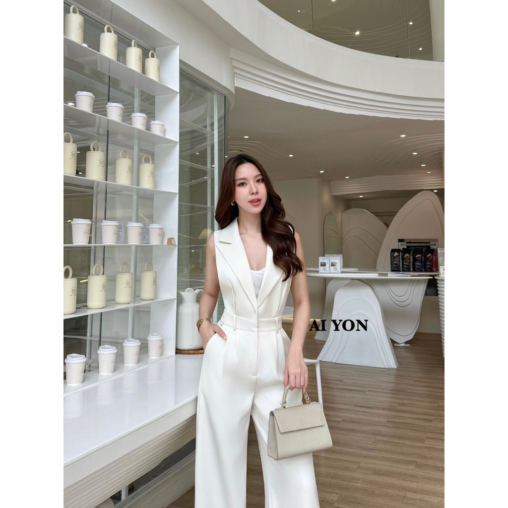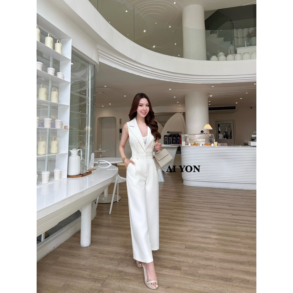 Aiyon จั๊มสูทกางเกงขายาวแขนกุด คอปกทรงสูท