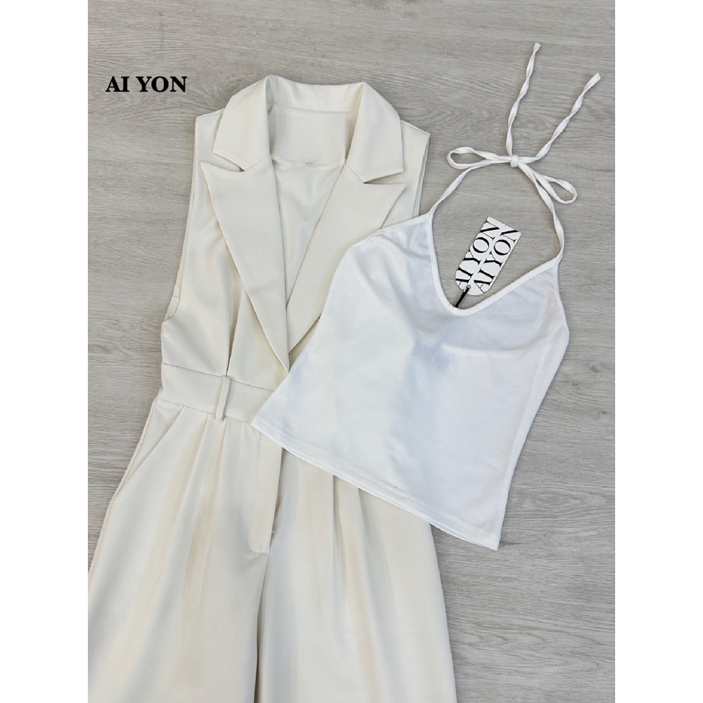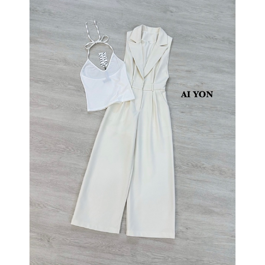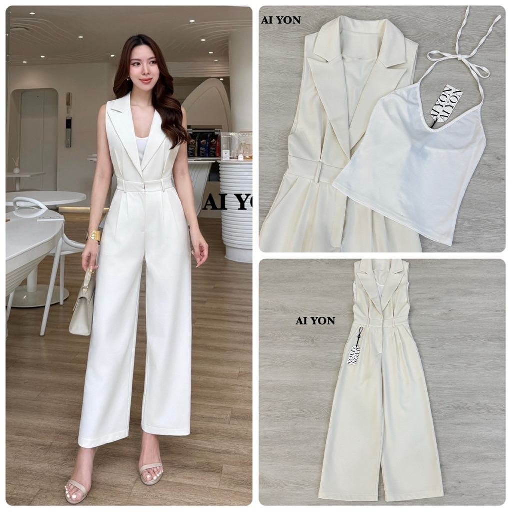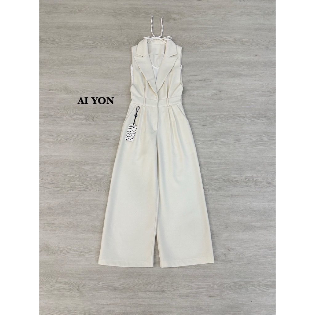 Aiyon จั๊มสูทกางเกงขายาวแขนกุด คอปกทรงสูท