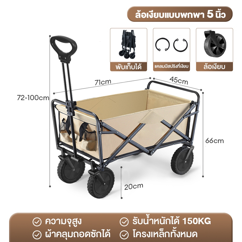 รถเข็นแคมป์ปิ้ง รถเข็นพับได้ 300KG รถเข็นแคมปิ้ง รถเข็นแคมป์พับได้ รถเข็นแบบพกพา รถเข็นปิกนิค รถเข็นพับได้