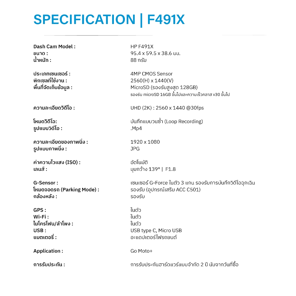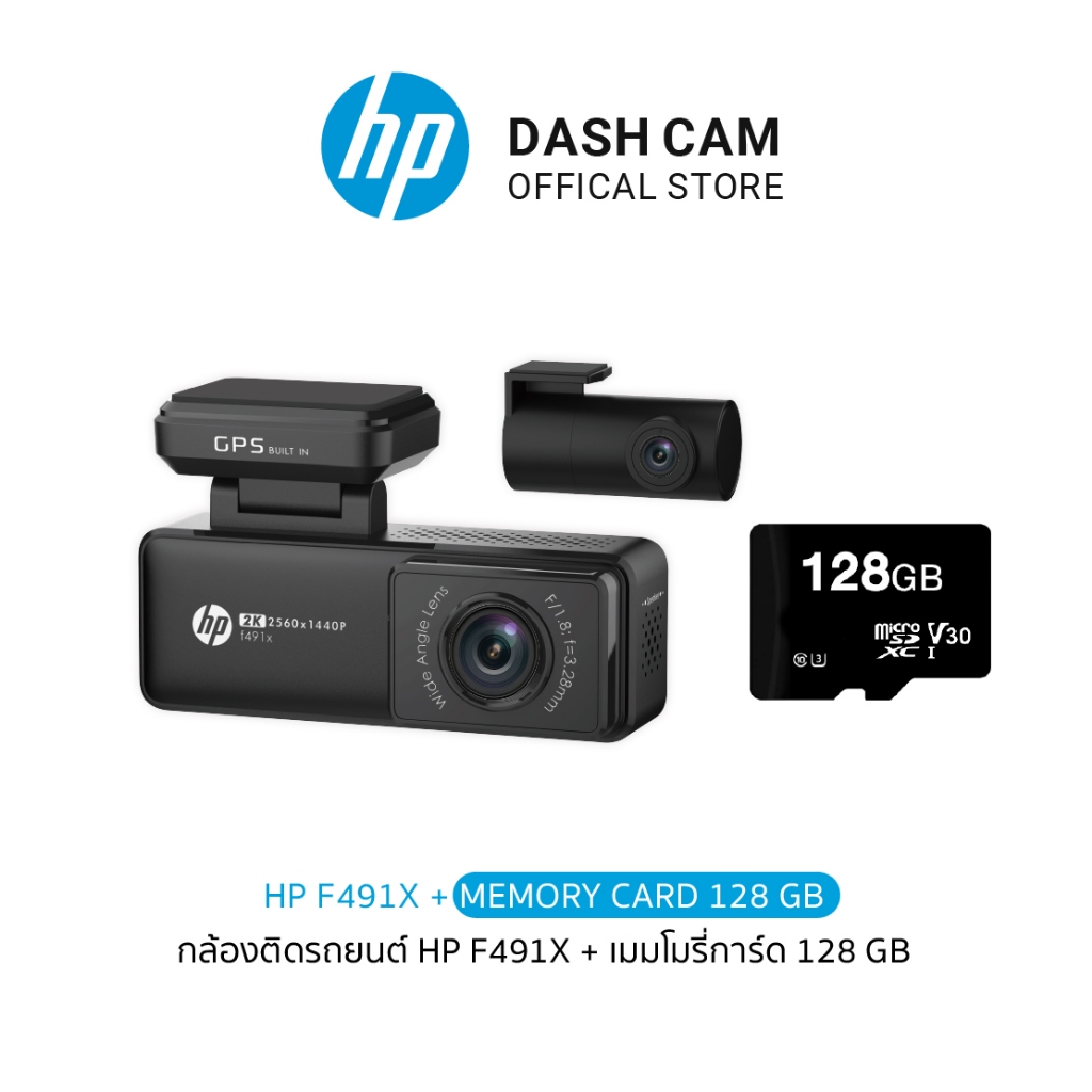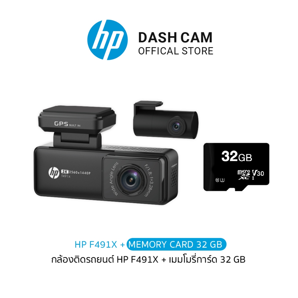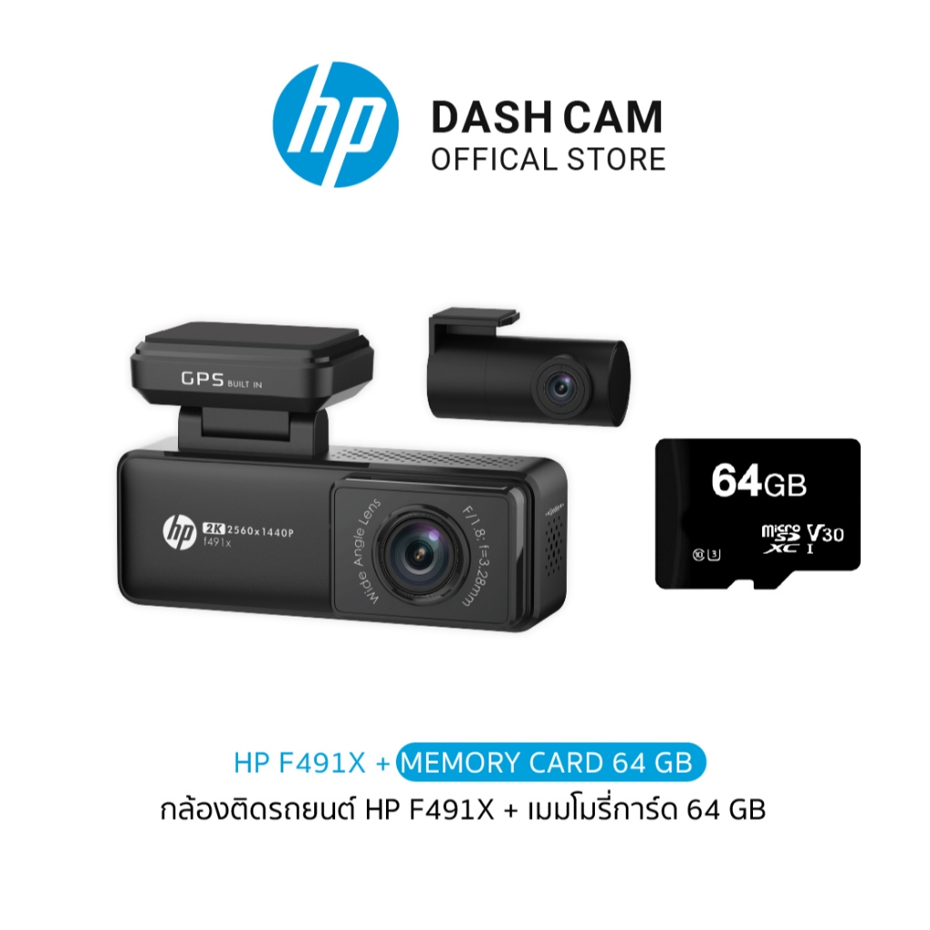 HP F491X DASHCAM กล้องติดรถยนต์ กล้องหน้า-หลัง 2K sensor GPS WiFi รับประกันสินค้า 2 ปี