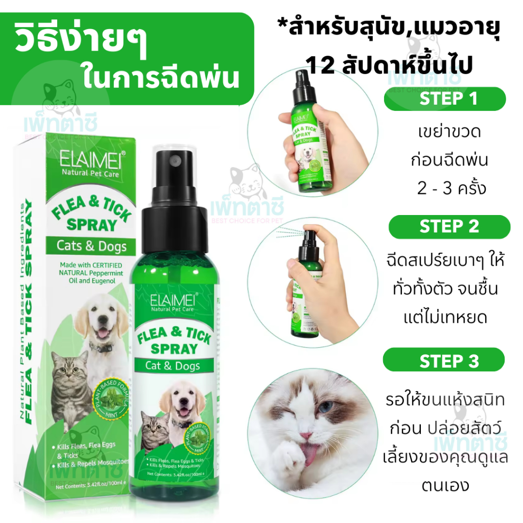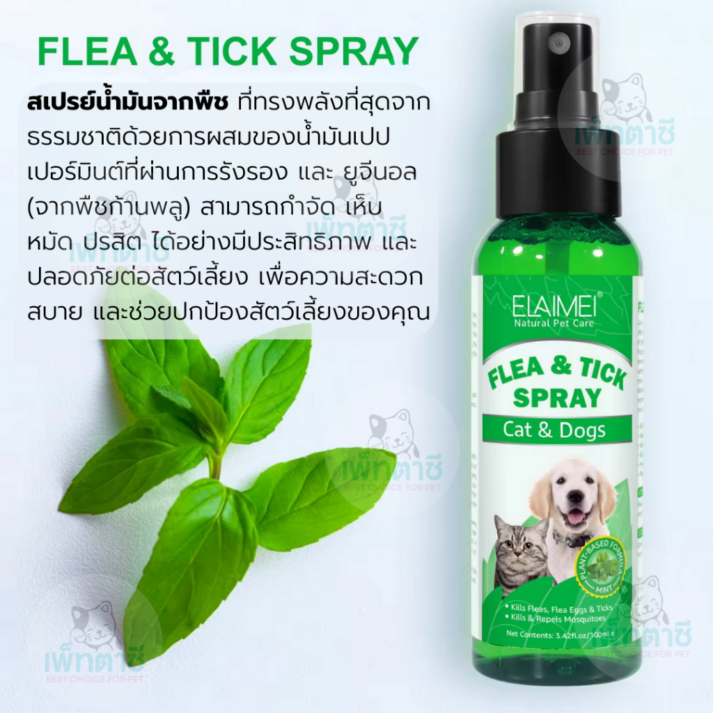 ELAMEI สเปรย์กำจัดเห็บ,หมัด,ยุง ใช้ได้ทั้งสุนัขและแมว ธรรมชาติแท้ กำจัดปรสิตได้ทุกวัย