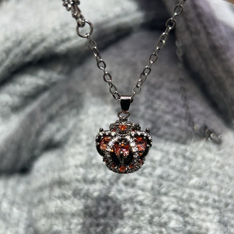 Jiaer เดียวกันสไตล์สร้อยคอมงกุฎผู้ชายและผู้หญิงสีแดงZircon Shining Diamond All-Matchเสื้อกันหนาวRetro High Senseเสื้อผ้าอุปกรณ์เสริม