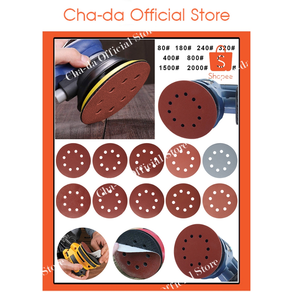 กระดาษทรายกลมแบบมีรู5นิ้ว(คุณภาพสูง)กระดาษทรายตีนตุ๊กแก กระดาษทรายกลมหนามเตย กระดาษทรายกลมหลังสักหลาด ขัดไม้เหล็ก