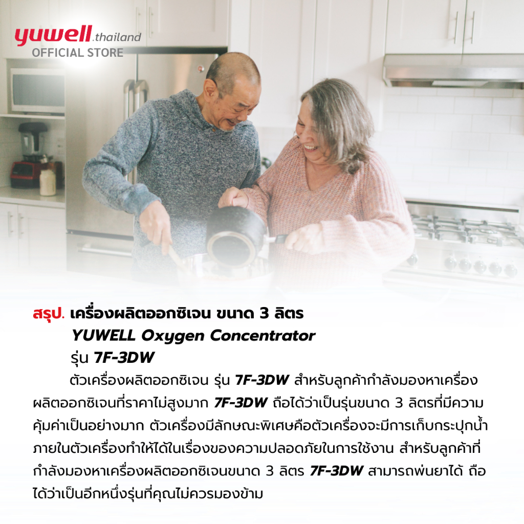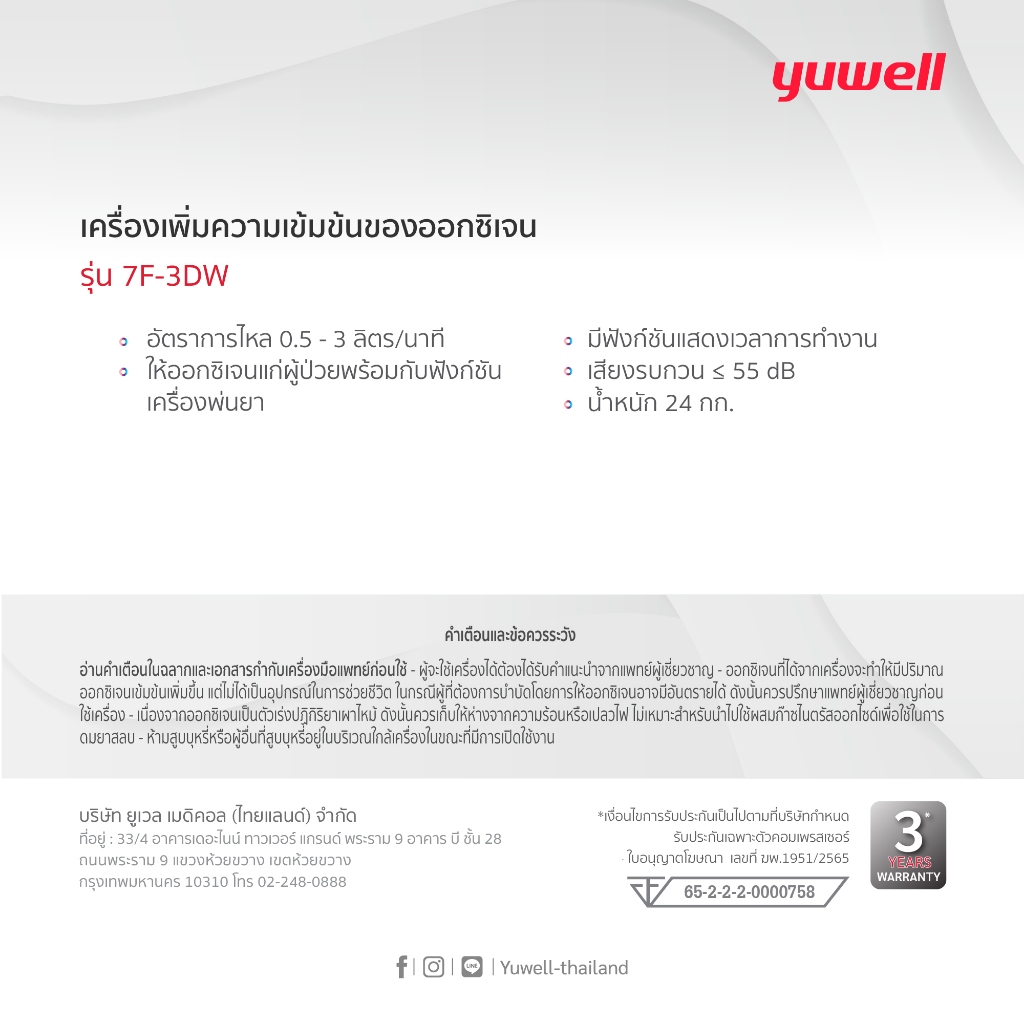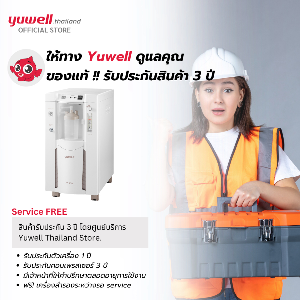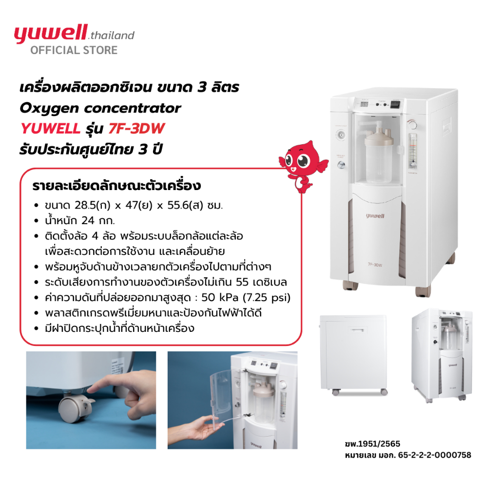 เครื่องผลิตออกซิเจน ขนาด 3 ลิตร ยี่ห้อ Yuwell รุ่น 7F-3DW รับประกันศูนย์ไทย 3 ปี