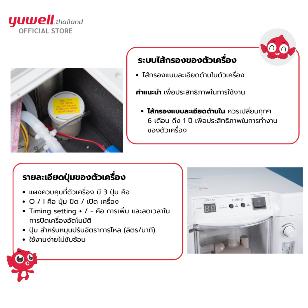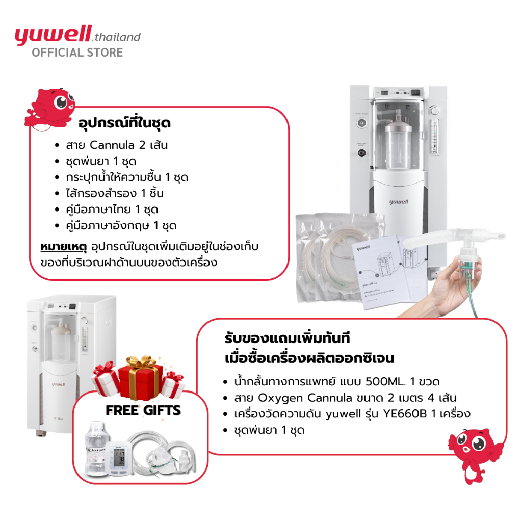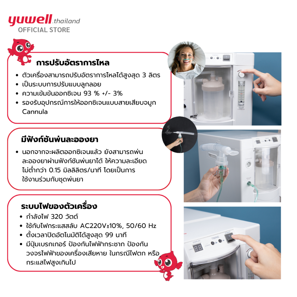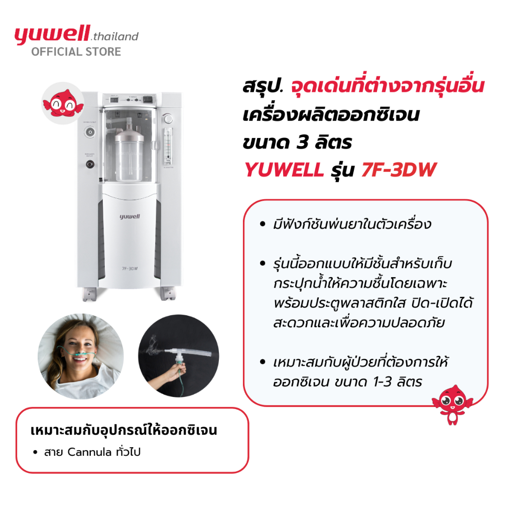 เครื่องผลิตออกซิเจน ขนาด 3 ลิตร ยี่ห้อ Yuwell รุ่น 7F-3DW รับประกันศูนย์ไทย 3 ปี