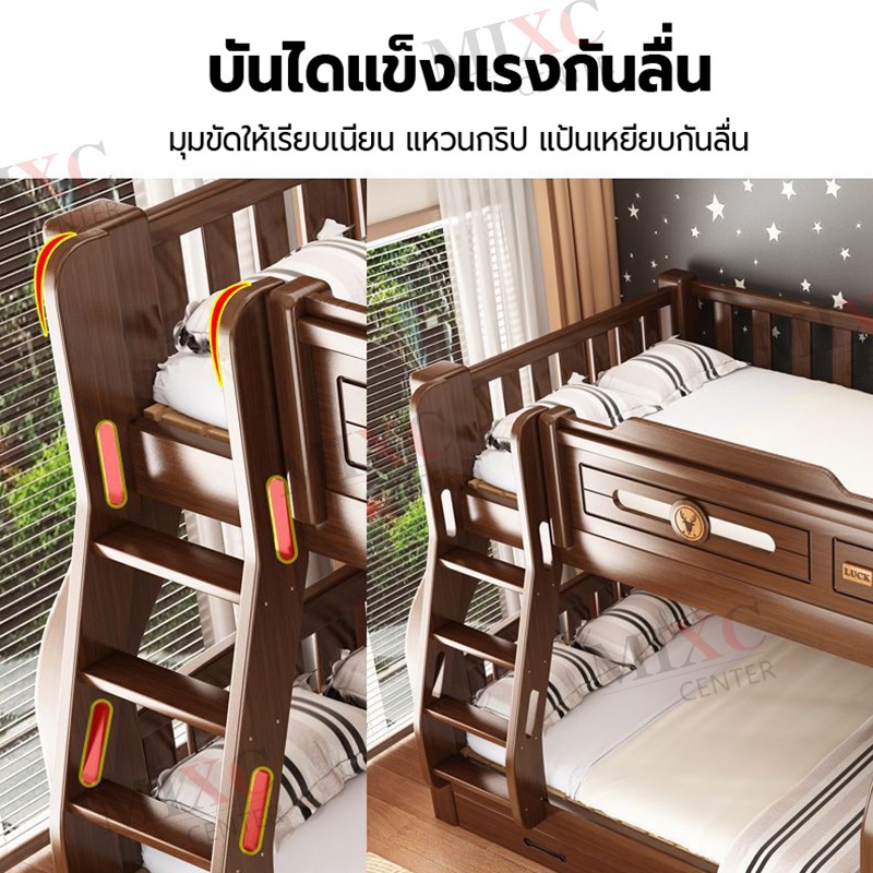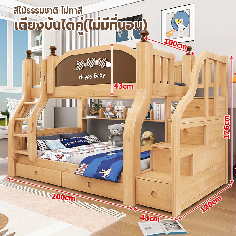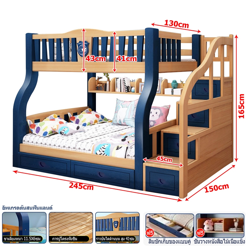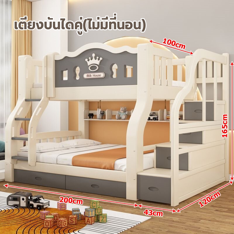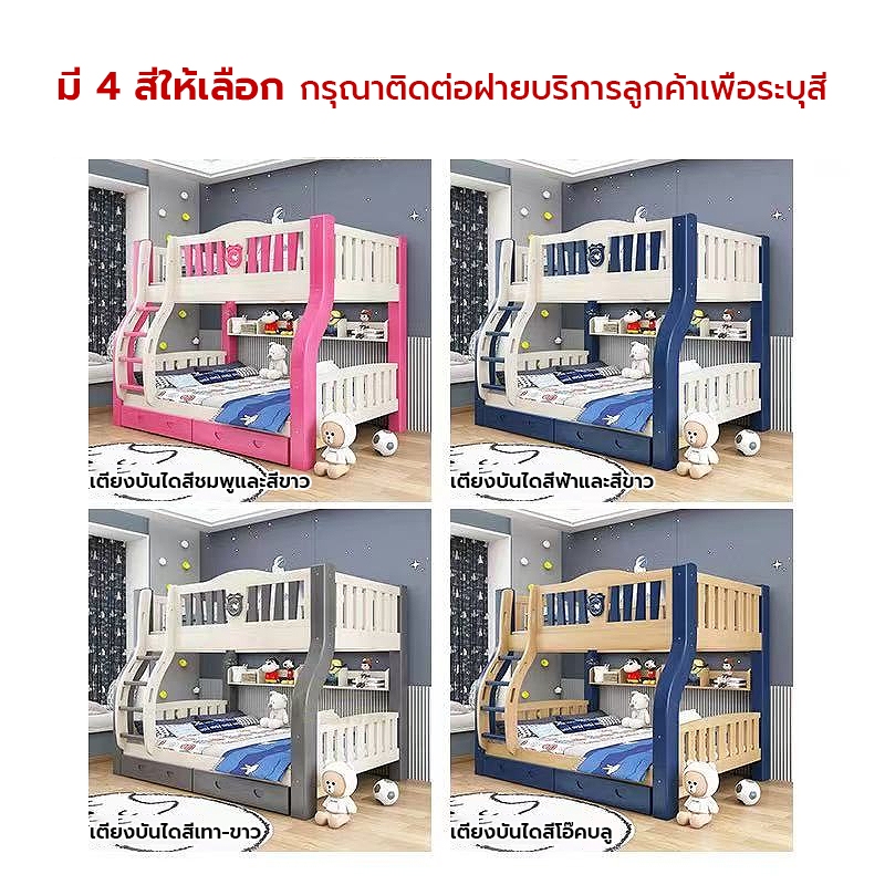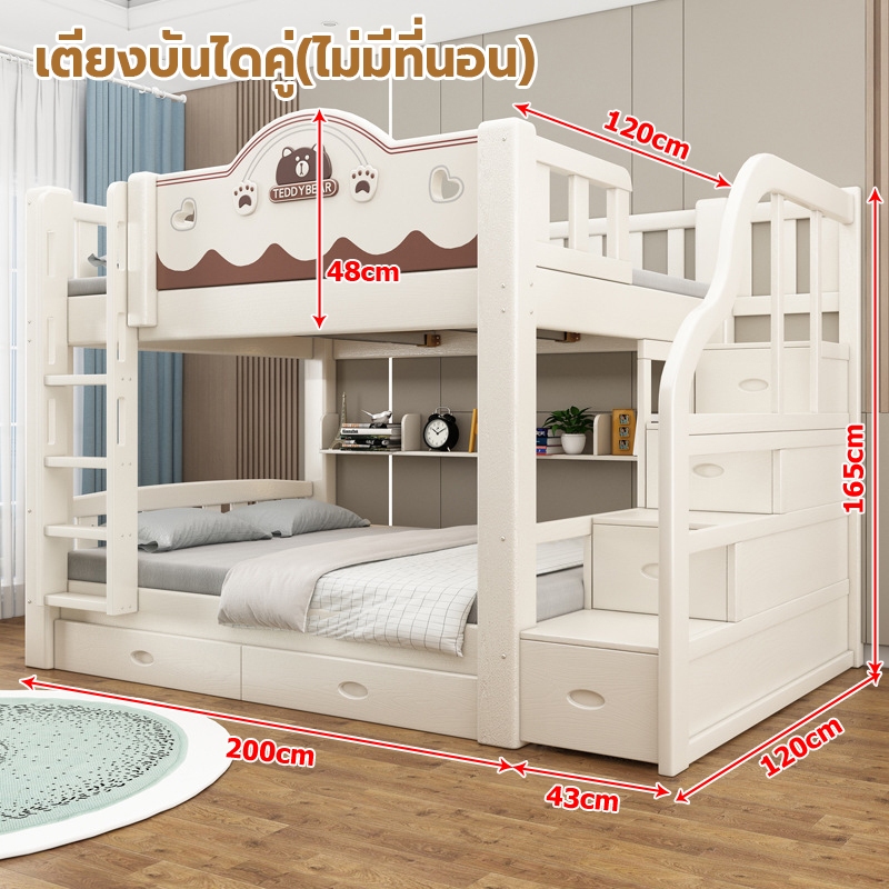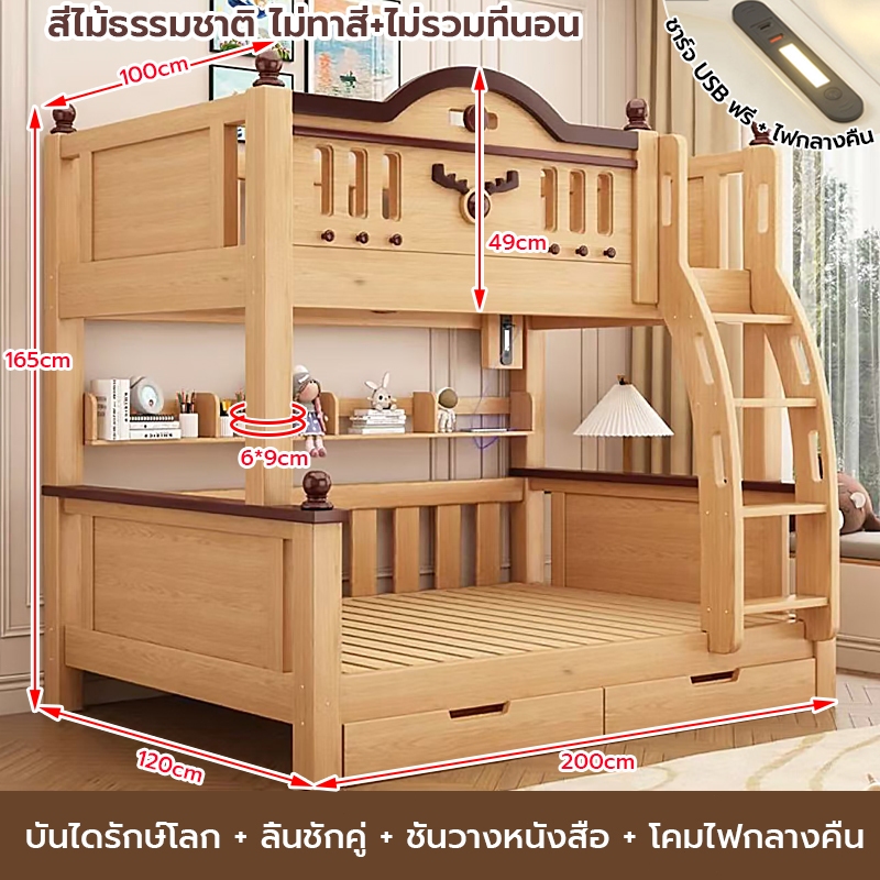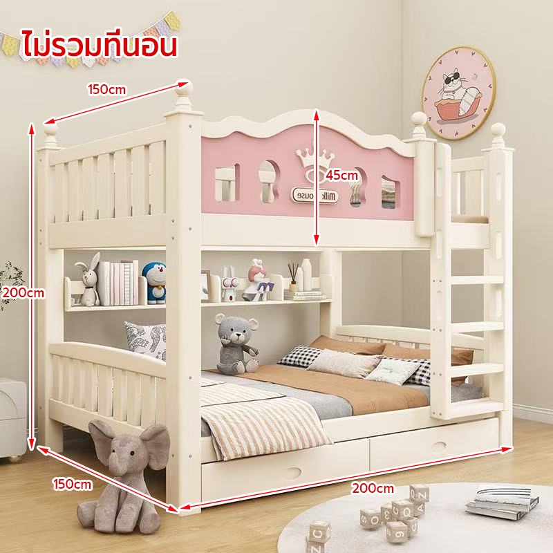 เตียง2ชั้นเด็ก ความสามารถในการรับน้ำหนักสูงสุด250กก.เตียงสองชั้นไม้เนื้อแข็งเหมาะสำหรับทั้งผู้ใหญ่และเด็ก เตรียงนอน2ชั้น