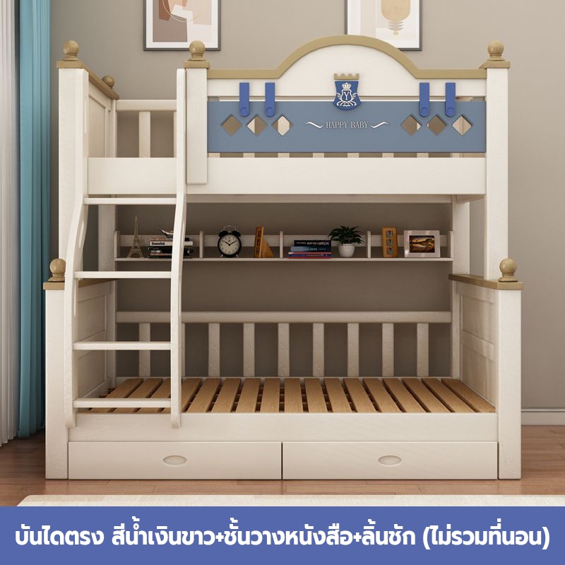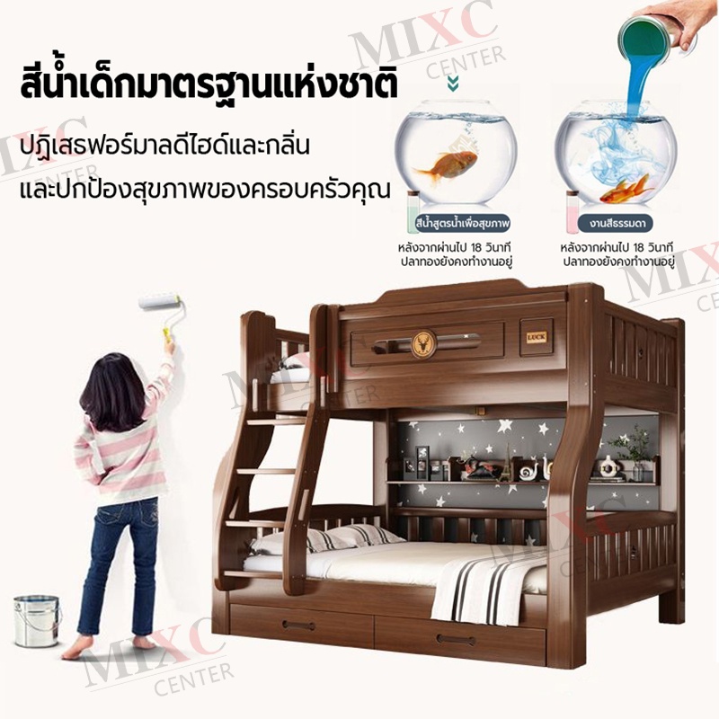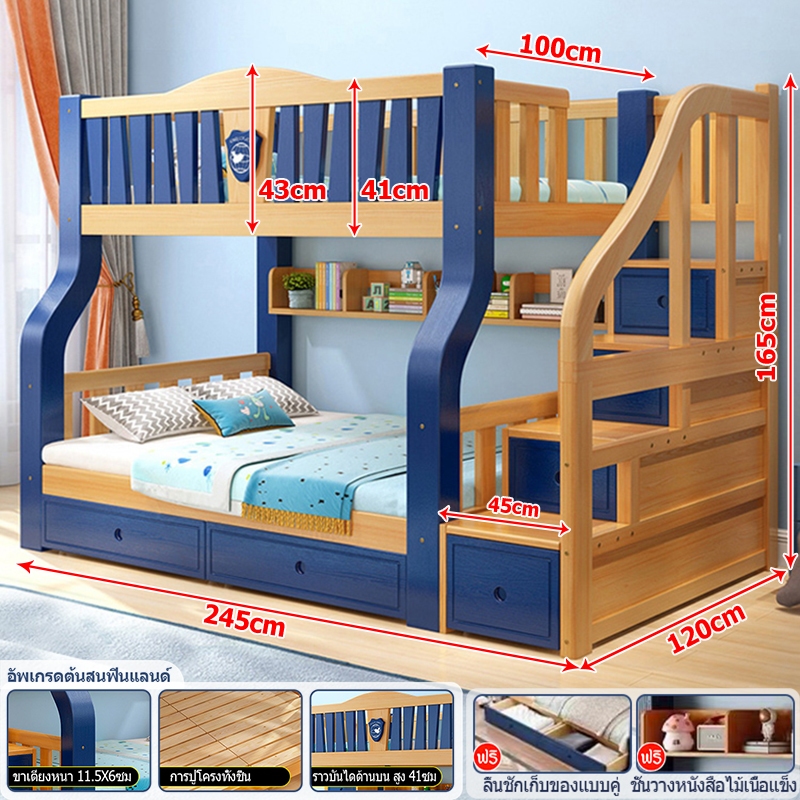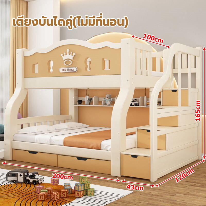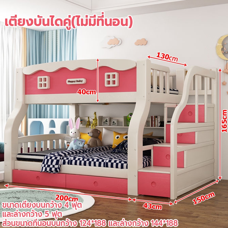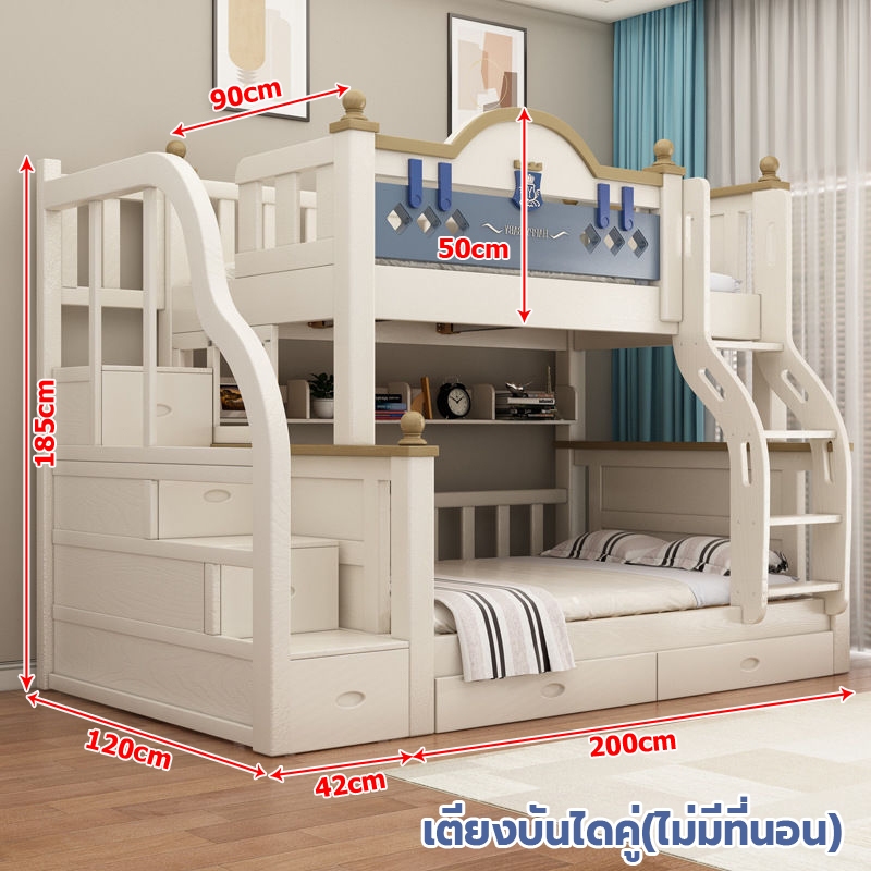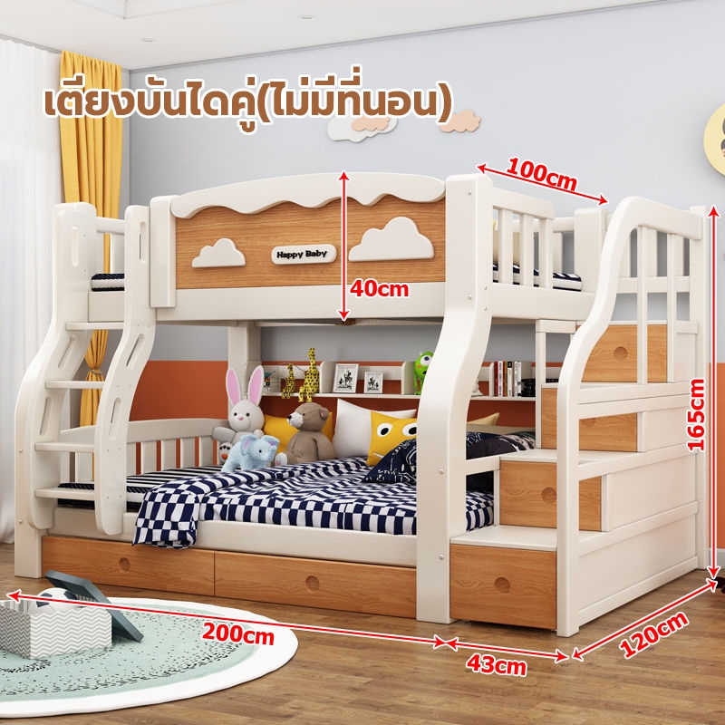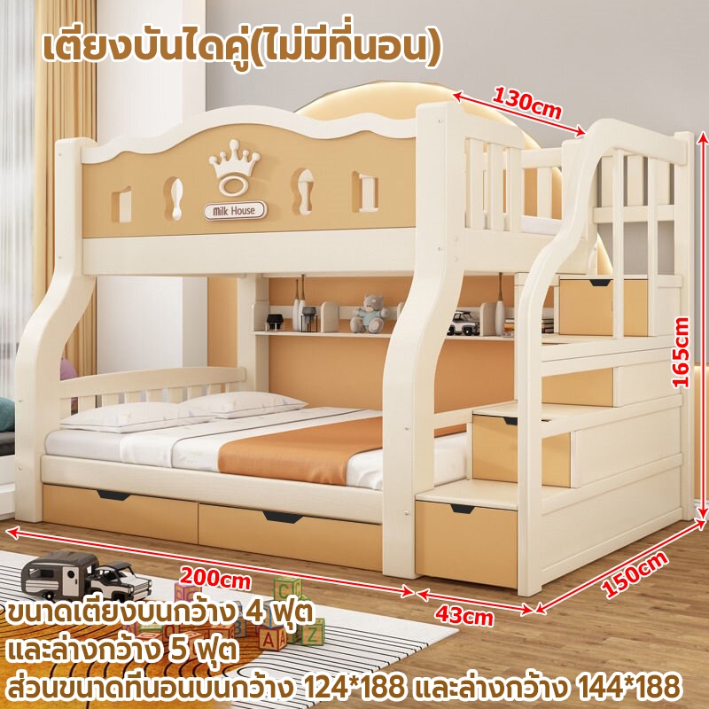 เตียง2ชั้นเด็ก ความสามารถในการรับน้ำหนักสูงสุด250กก.เตียงสองชั้นไม้เนื้อแข็งเหมาะสำหรับทั้งผู้ใหญ่และเด็ก เตรียงนอน2ชั้น