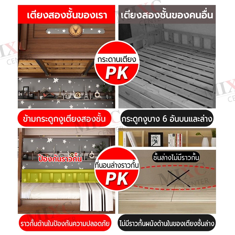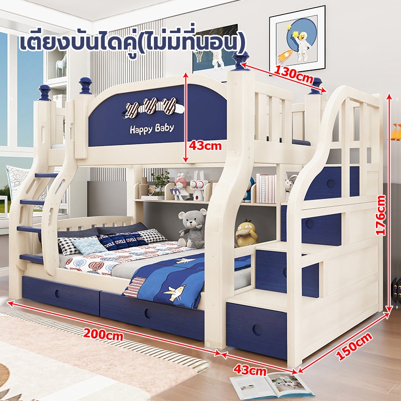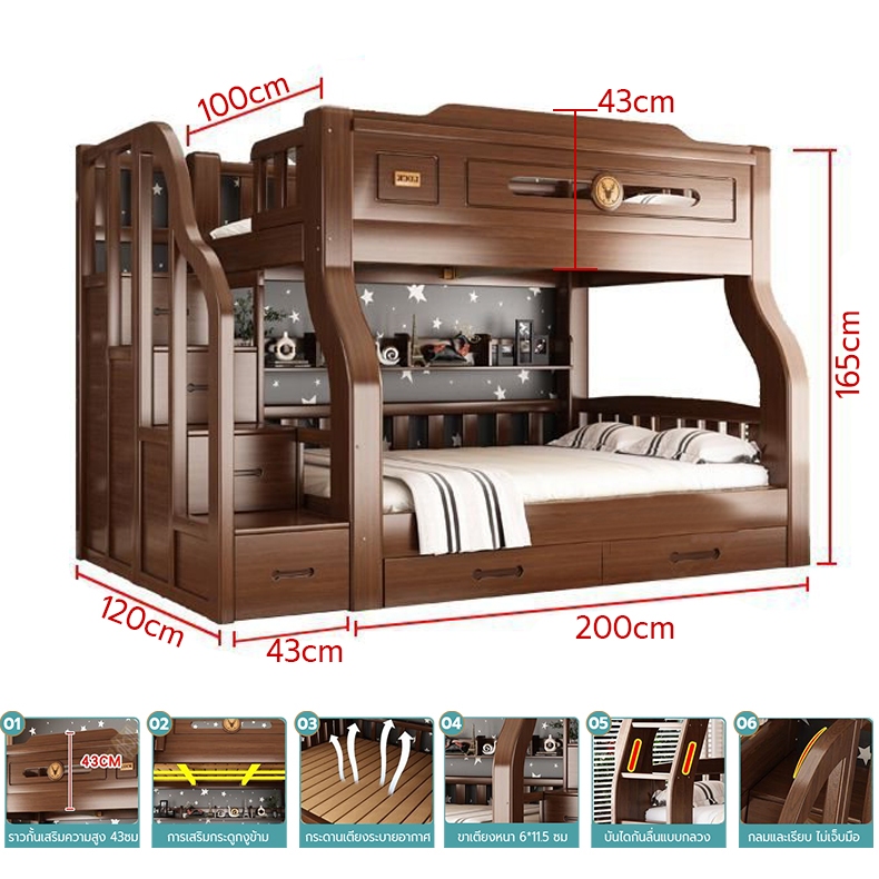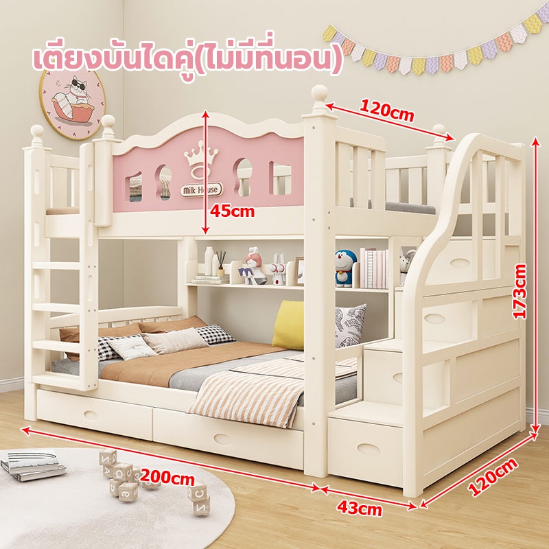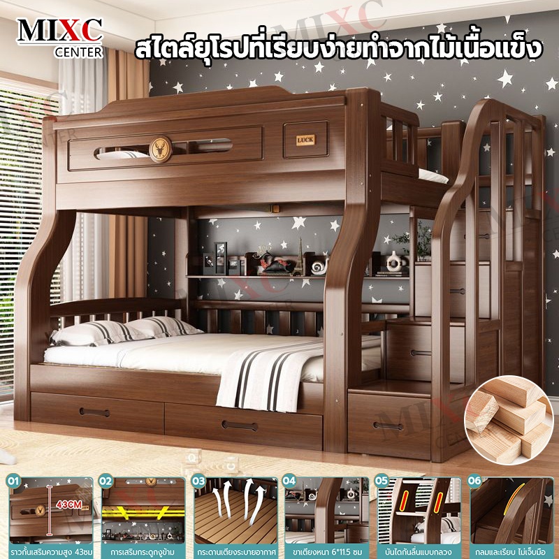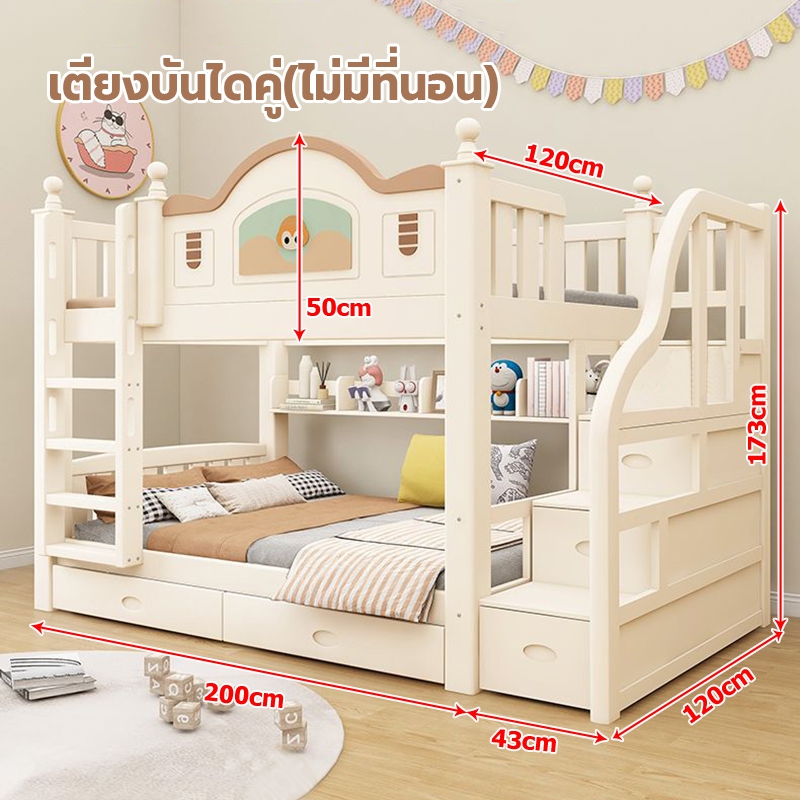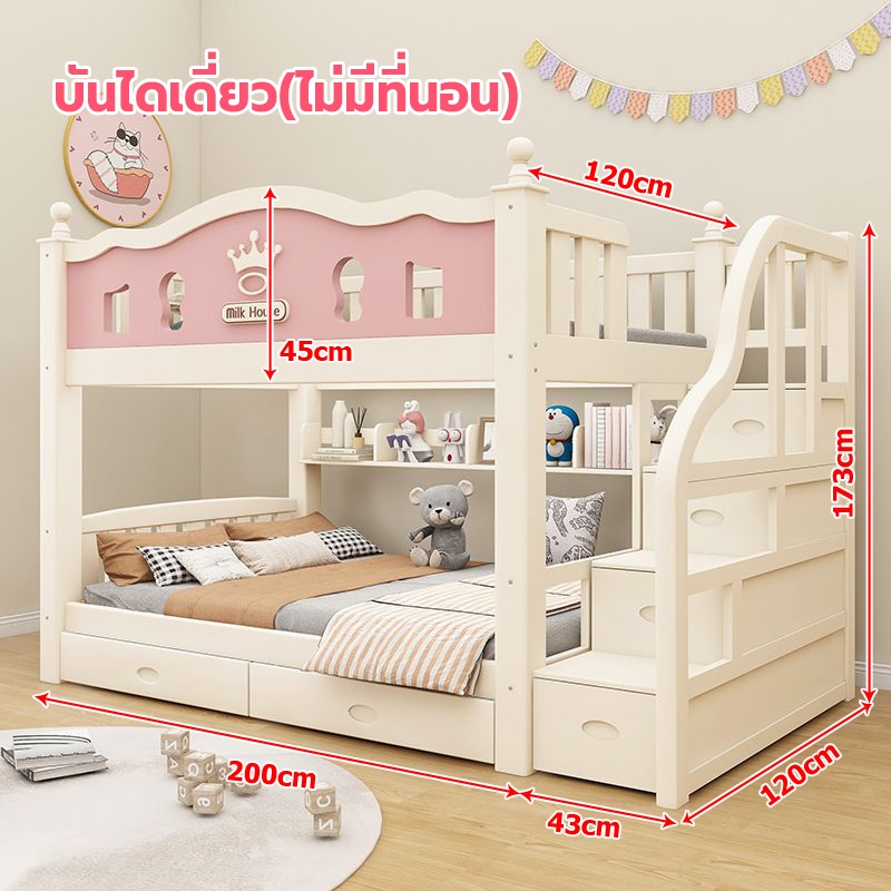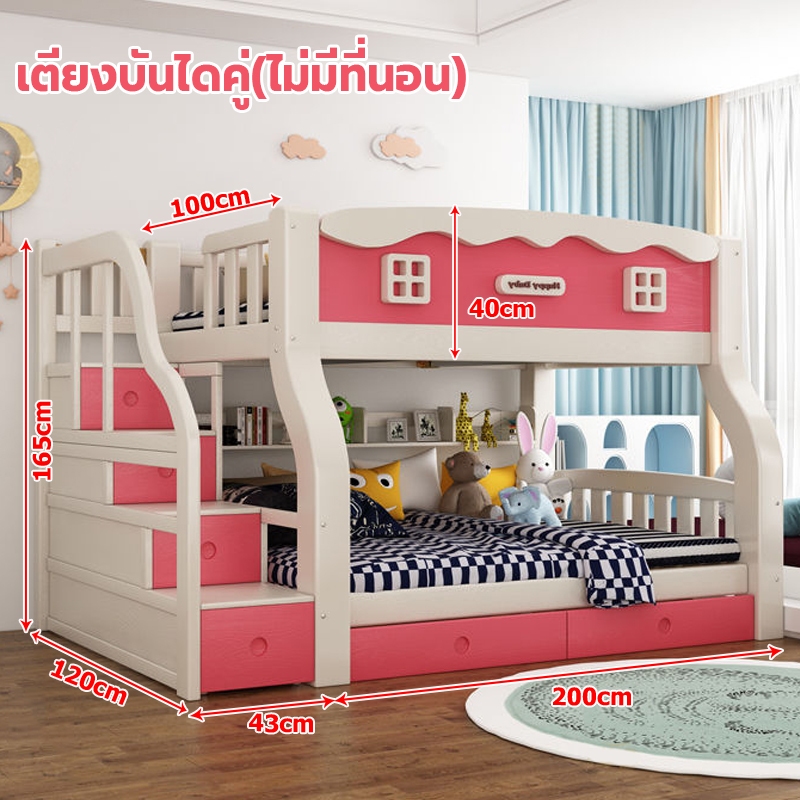 เตียง2ชั้นเด็ก ความสามารถในการรับน้ำหนักสูงสุด250กก.เตียงสองชั้นไม้เนื้อแข็งเหมาะสำหรับทั้งผู้ใหญ่และเด็ก เตรียงนอน2ชั้น