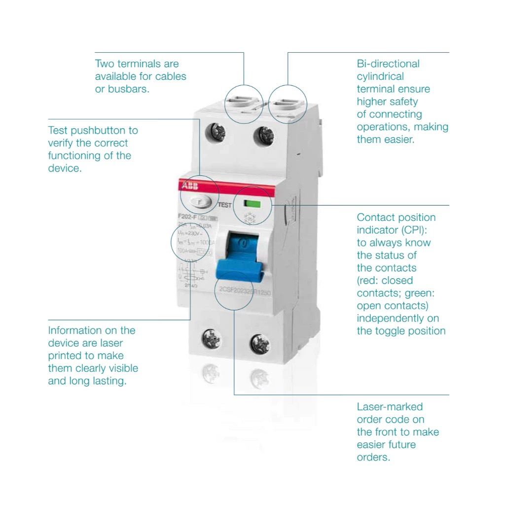 ABB RCCB type A F204A 4P 40A 30mA สำหรับ EV Charger