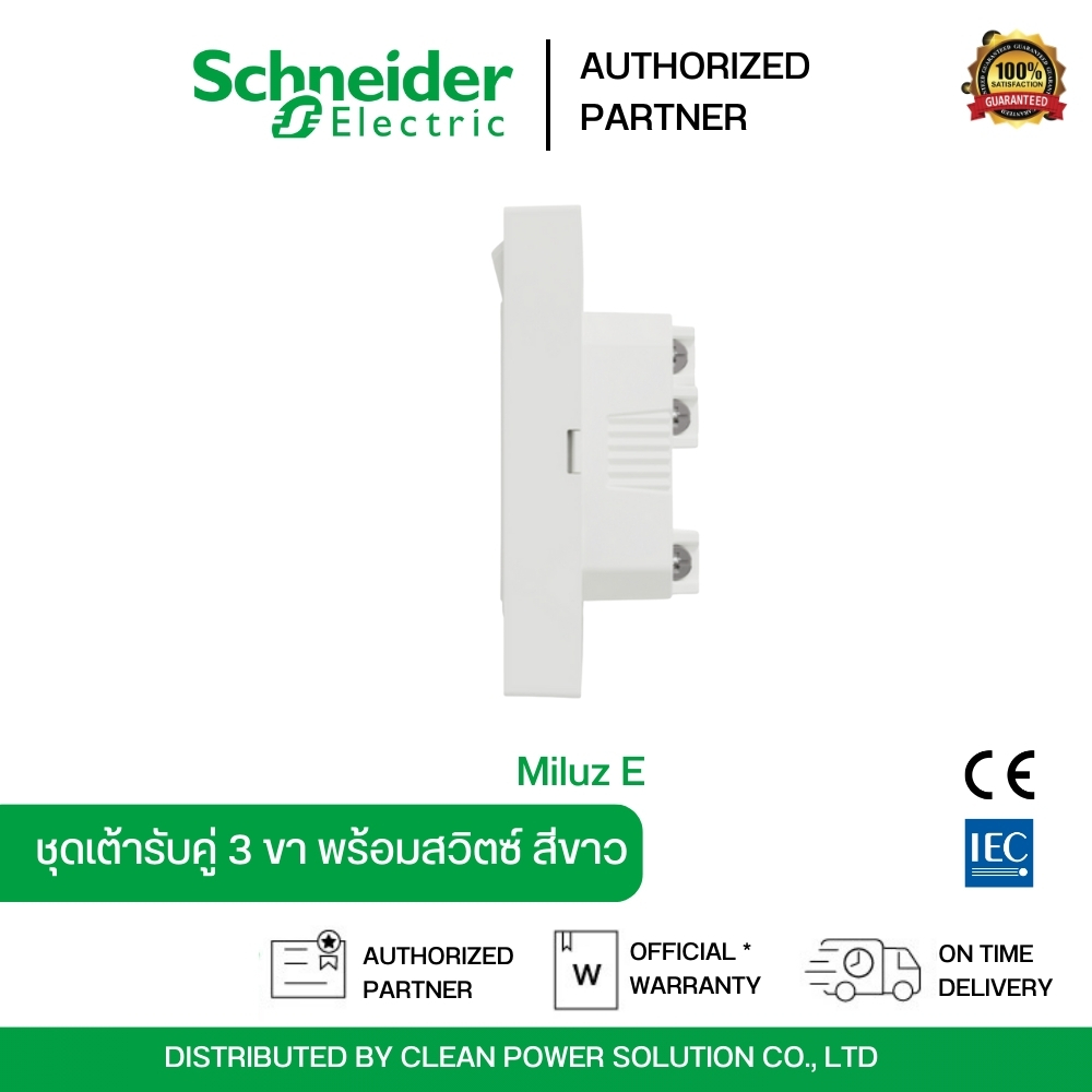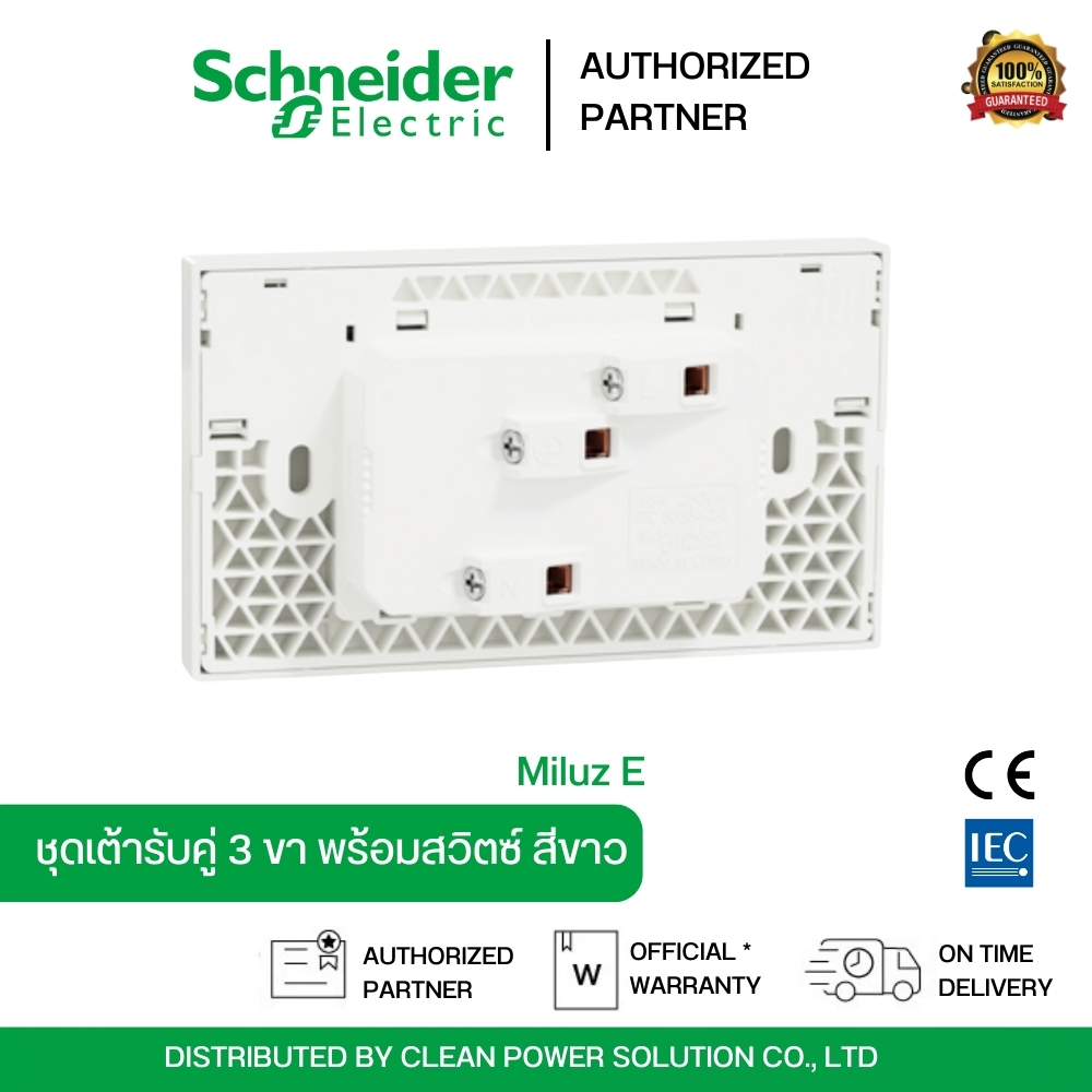 Schneider Electric Miluz E ชุดเต้ารับคู่ 3 ขา สีขาว พร้อมสวิตช์ควบคุม | M3TS_SIS_WE
