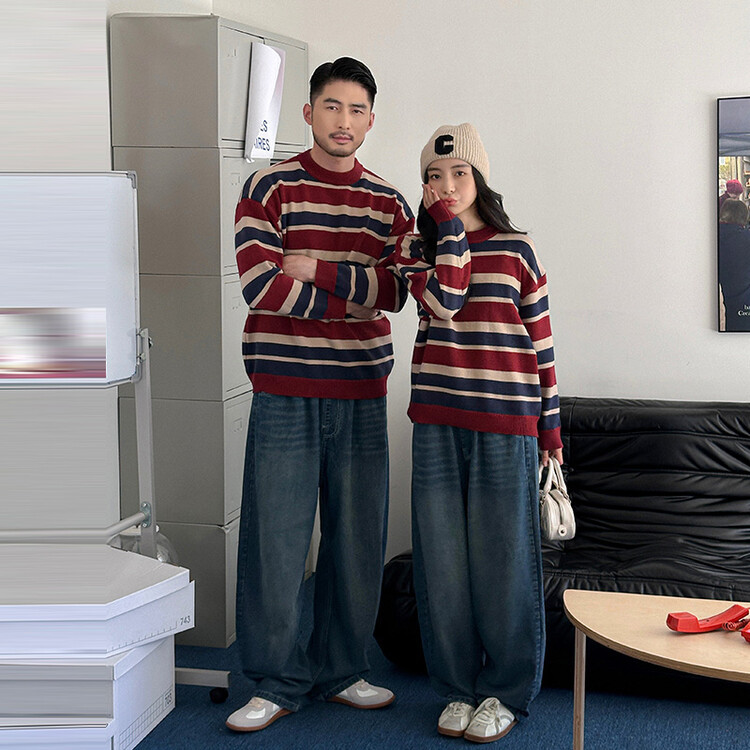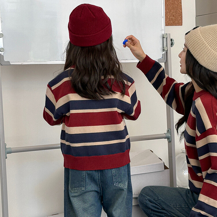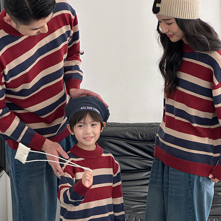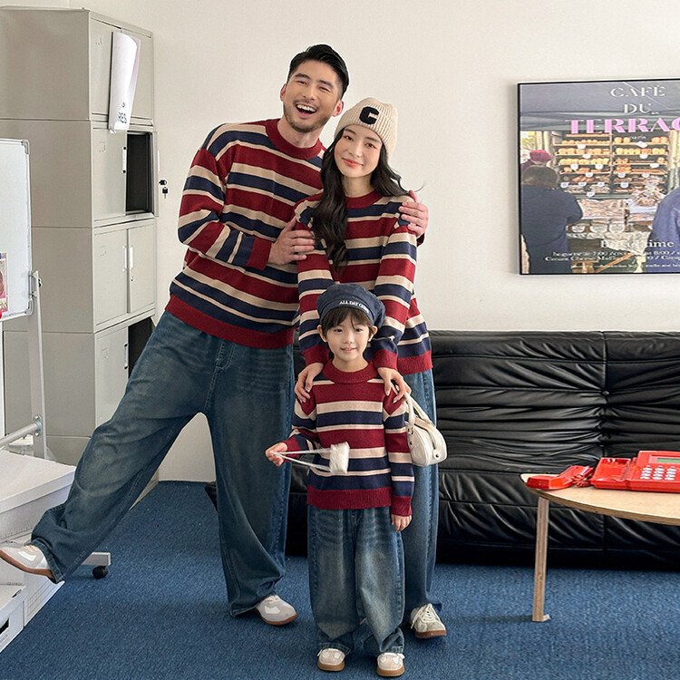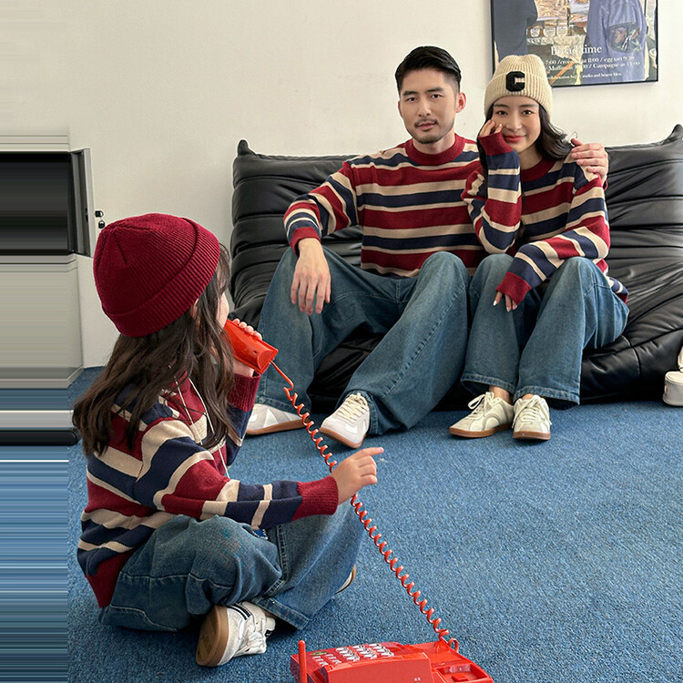 เสื้อกันหนาวลายทาง ฤดูใบไม้ร่วงฤดูหนาว, พ่อแม่และลูกสวมย้อนยุคสไตล์ฮ่องกงครอบครัว, ครอบครัวสามสี่เสื้อถักเสื้อกันหนาว, สวมใส่คู่
