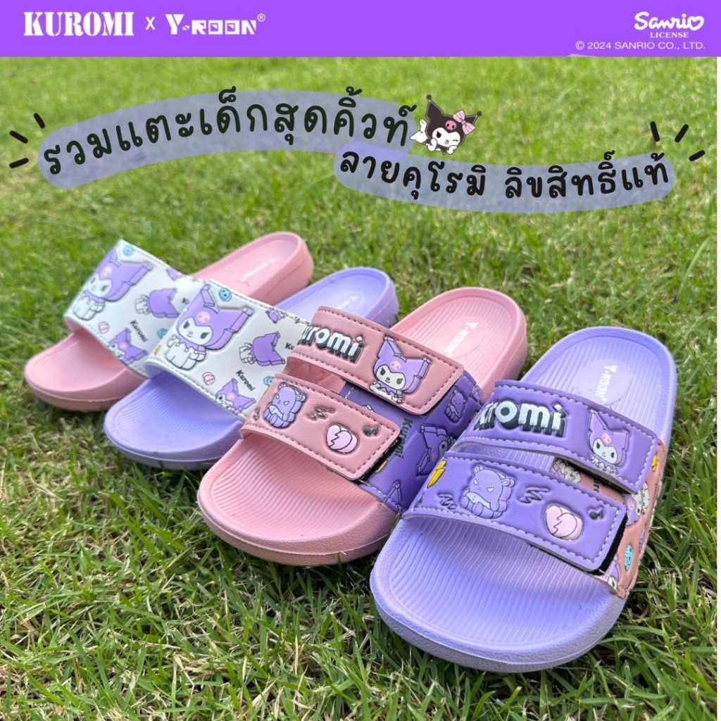 รองเท้าเด็ก รองเท้าแตะเด็กแบบสวม💚พร้อมส่งสต๊อกในไทย💚Y-ROON ห้วโตเด็กแถมตัวติดคุโรมิ Kuromi ลิขสิทธิ์แท้100%😈