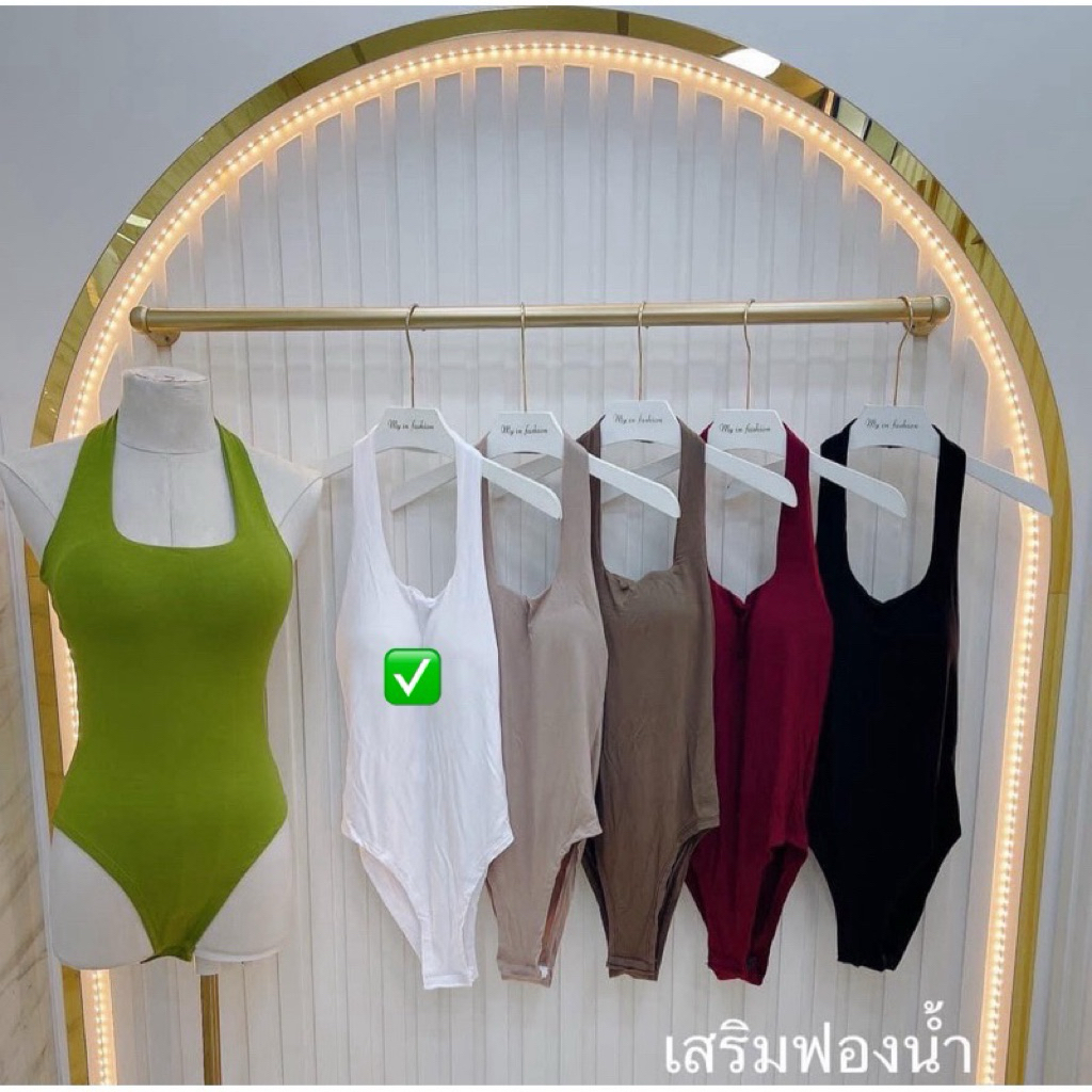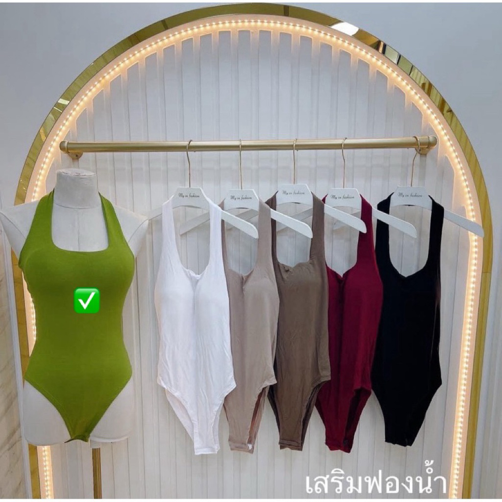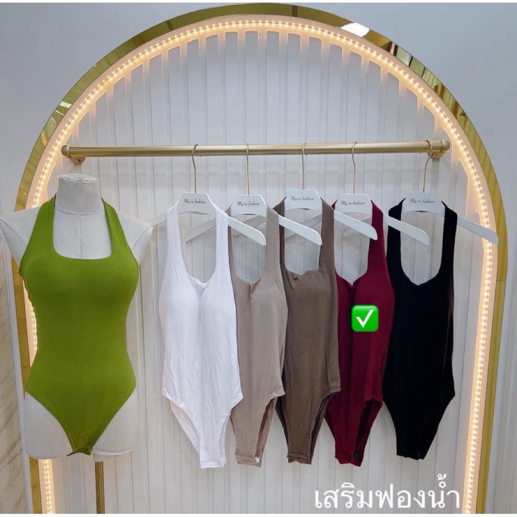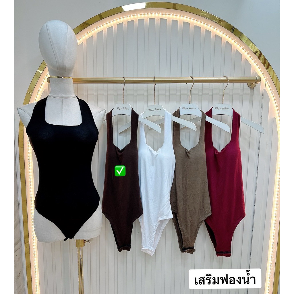 🧸 bodysuit sexy🧸 บอดี้สายคล้องคอ เว้าเอว ผ้าเรย่อน เสริมฟองน้ำ