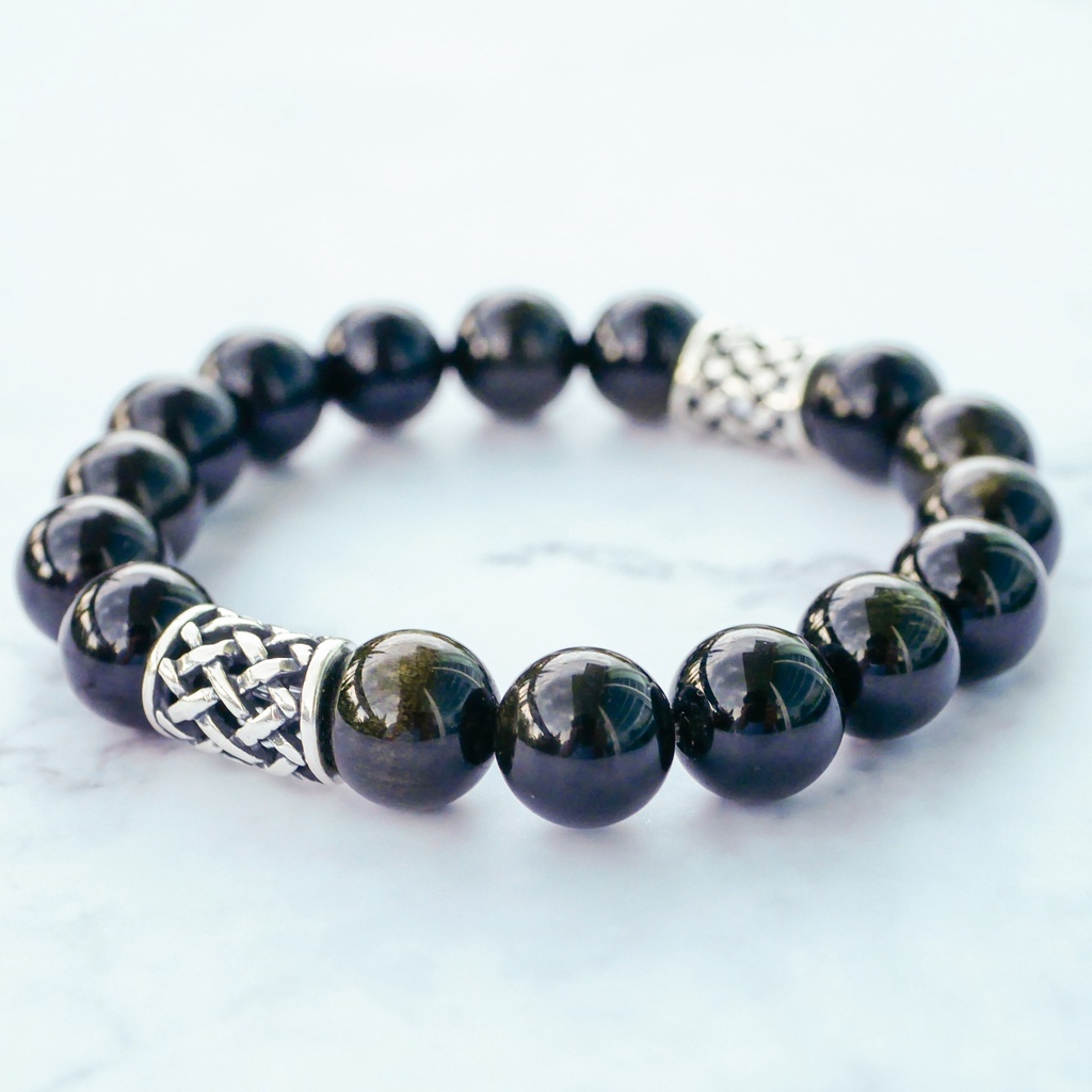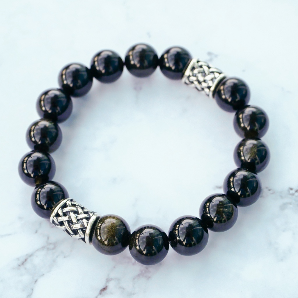 กำไลหินมงคล พร้อมส่ง หินธรรมชาติแท้ Gold Sheen Obsidian เสริมดวงช่วยคุ้มครองจากสิ่งไม่ดี ใช้หินมงคลขนาด 10mm. | VANANDA