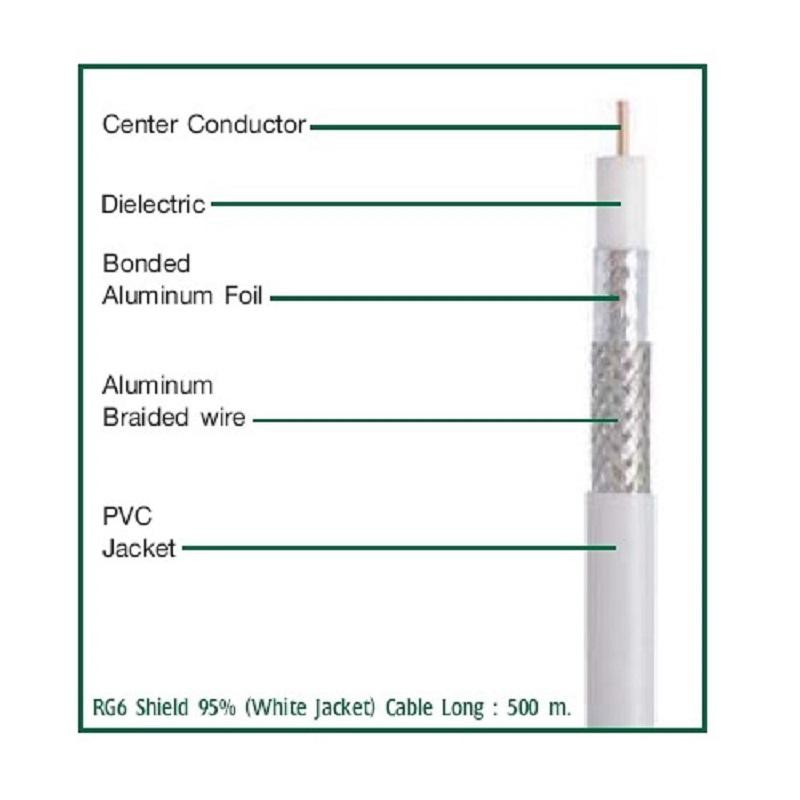 สายสัญญาณ RG6 ชิลล์ 60% PVC 6.8 mm. ถักซีน 64 เส้น ยาว 50 เมตร สายแข็ง นำสัญญาณได้ดี สำหรับจานดาวเทียม ทีวีดิจิตอล(สีดำ)