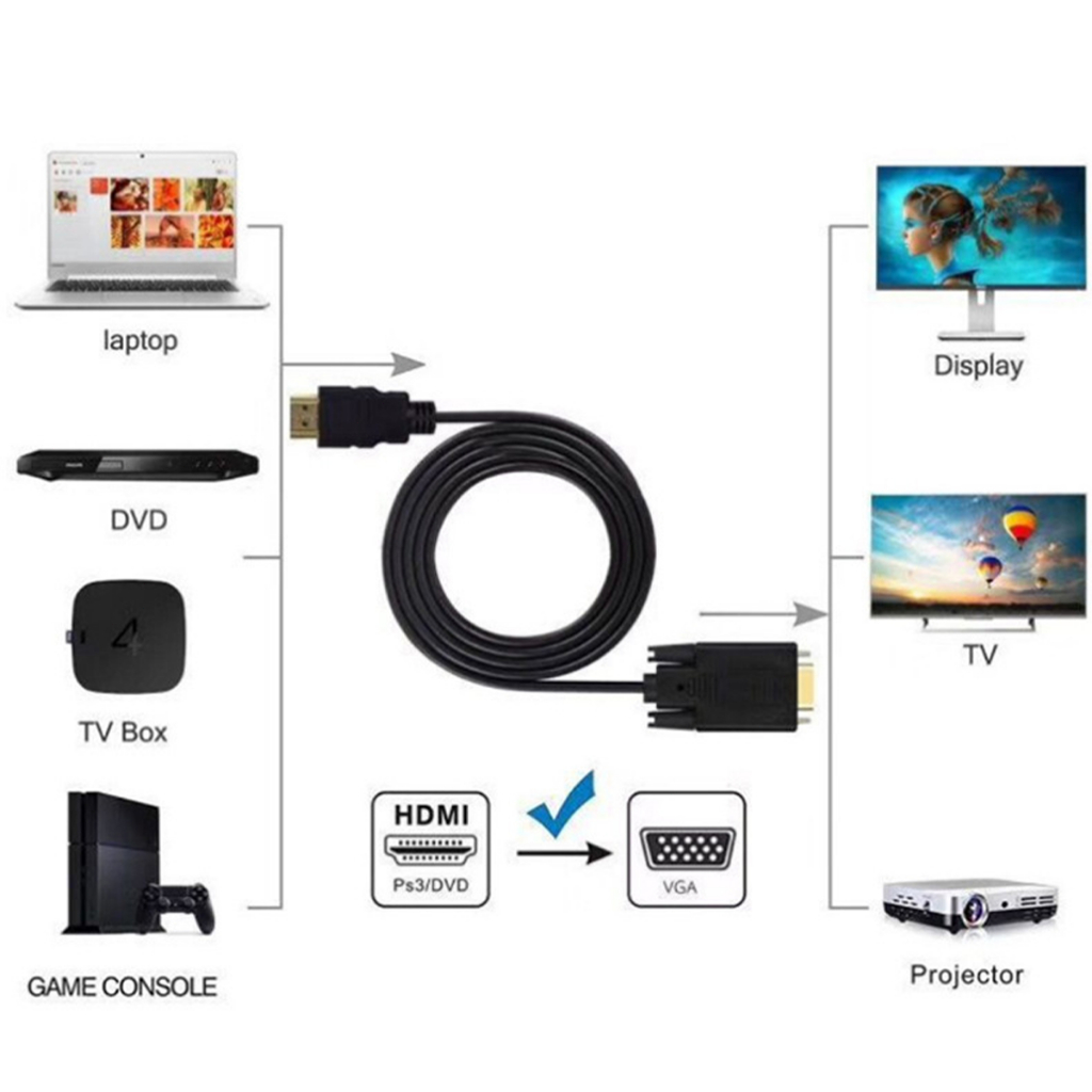 ต่อทีวี!สายแปลง HDMI to VGA Adapter Converter Full HD 1080P 1/1.8/3เมรต