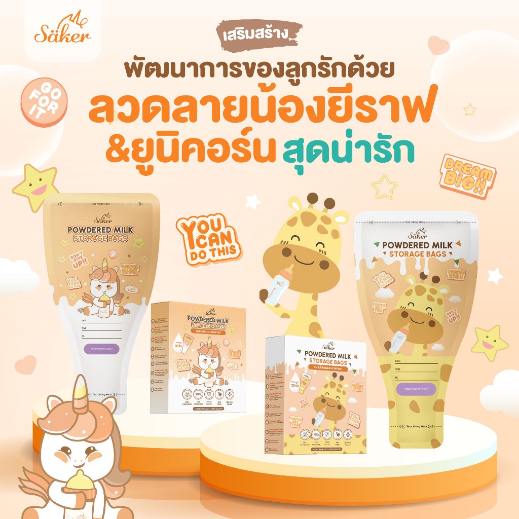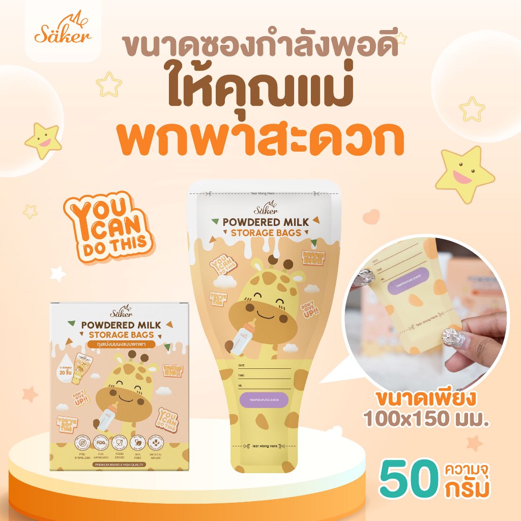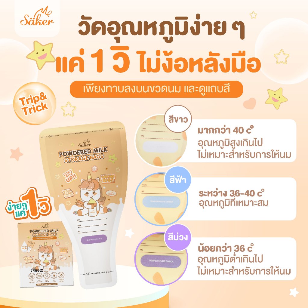 (มาตรฐานอย.สหรัฐ) วัดอุณหภูมินมได้ ทันที Saker ถุงแบ่งนมผง พกง่าย เกรดอาหาร ซิปล็อกแน่น นมไม่จับก้อน