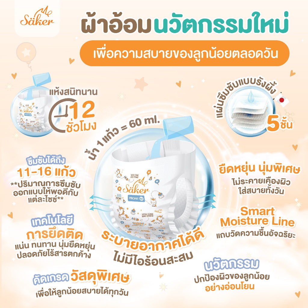 ลดกลิ่นฉี่ทันทีที่ซึมซับ(4นวัตกรร มระดับโลก)Saker ผ้าอ้อมสำเร็จรูปพรีเมี่ยม ผ่านรับรองจากแพทย์เยอรมนี