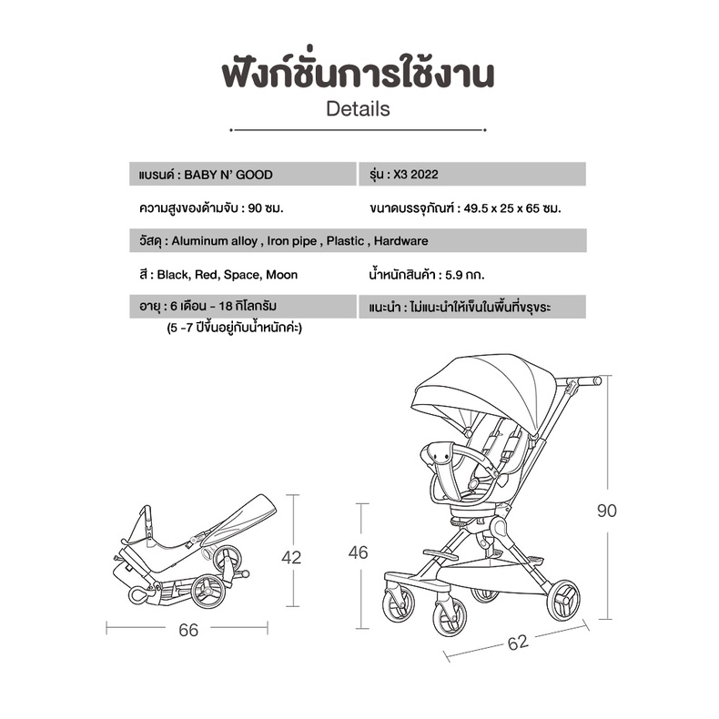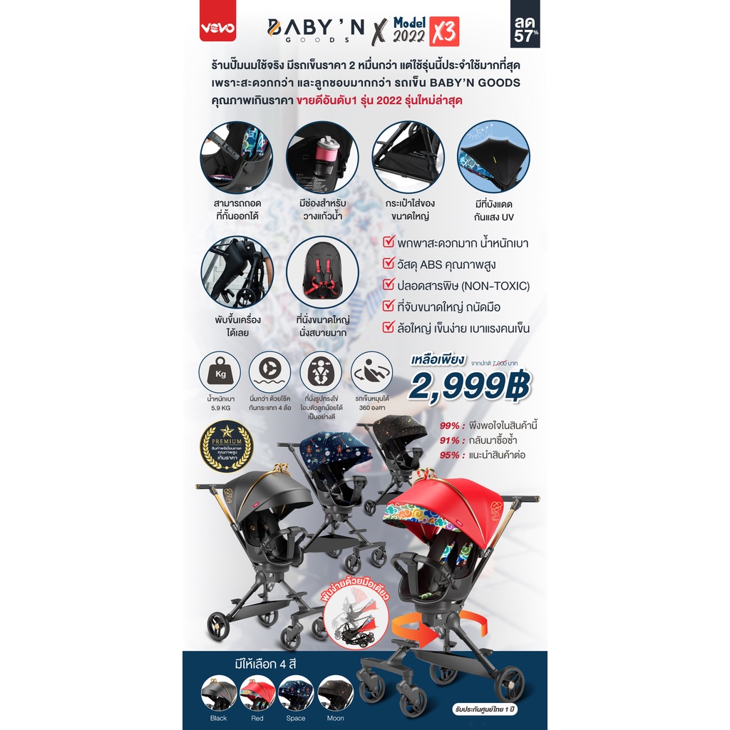 (ลด57%)สเปคหลักหมื่น ประกันศูนย์ไทย BABY’N GOODS รถเข็น รุ่นใหม่ล่าสุด VERO X3 พรีเมี่ยมเกรดคุณภาพสูง พับเล็กพกพาสะดวก