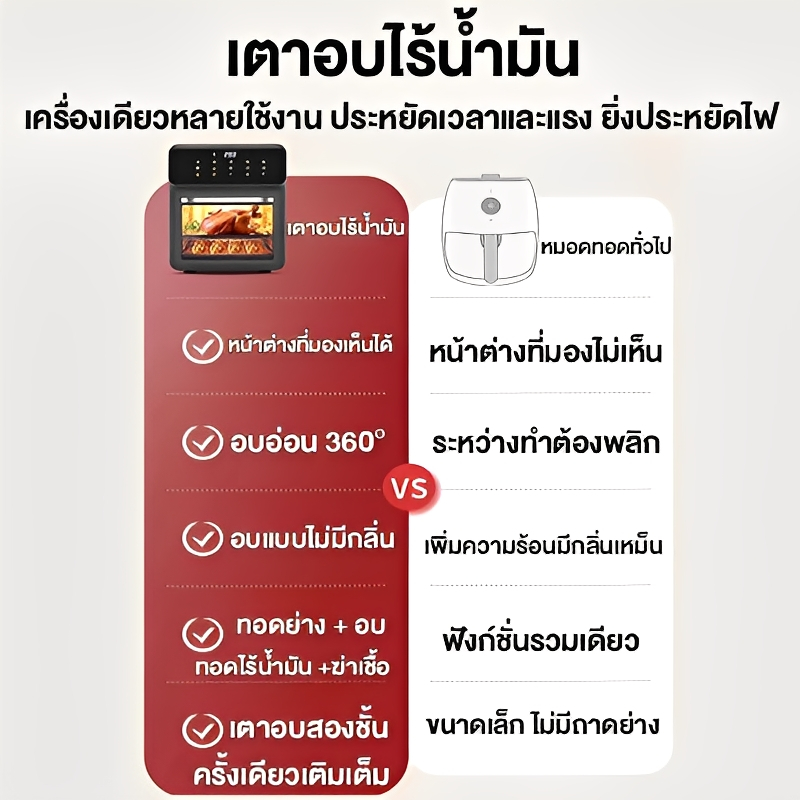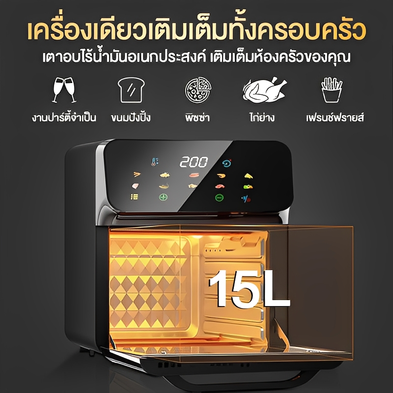 🔥รับประกัน 5 ปี🔥หม้อทอดไร้น้ำมัน 15L ความจุใหญ่ ระบบสัมผัสอัจฉริยะ ทําอาหารด้วยคลิกเดียว ไม่ต้องพลิกอาหาร หม้ออบลมร้อน หม้อทอดไร้มัน Air Fryer