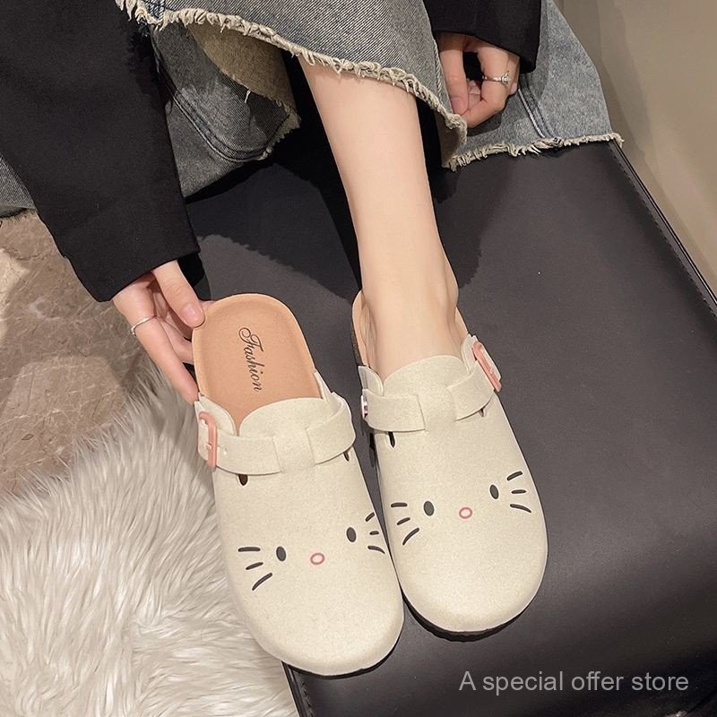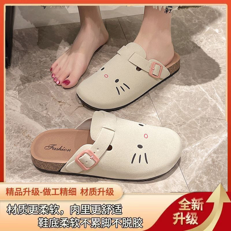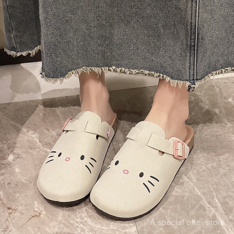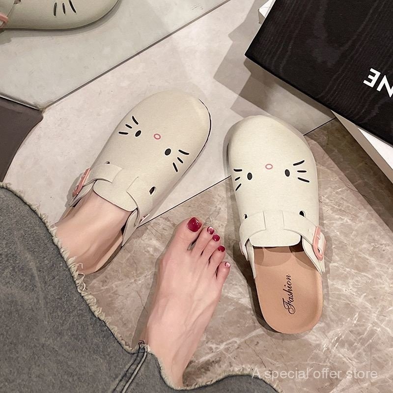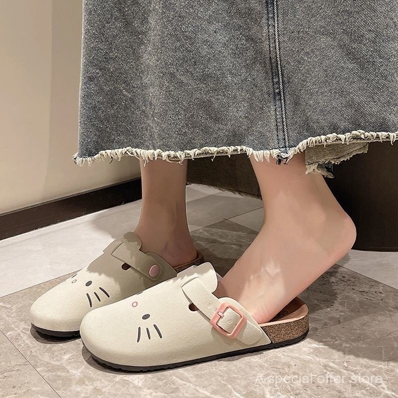 [ในสต็อก] รองเท้าบีร์กันสต็อกลายแมวน่ารักสำหรับผู้หญิง ฤดูใบไม้ผลิและฤดูใบไม้ร่วง สไตล์ใหม่ รองเท้ากลางแจ้งแบบเดี่ยว