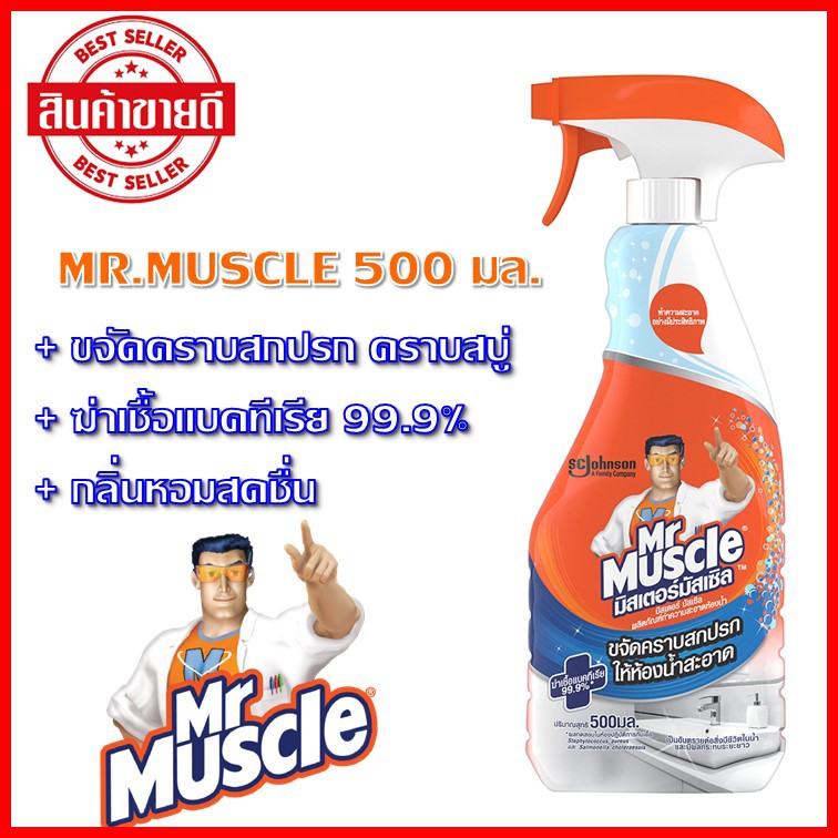 น้ำยาขจัดคราบสกปรก น้ำยาขจัดคราบคราบสบู่ MR.MUSCLE 500 มล. น้ำยาทำความสะอาดพื้น น้ำยาฆ่าเชื้อแบคทีเรีย สูตรกรดแลคติก