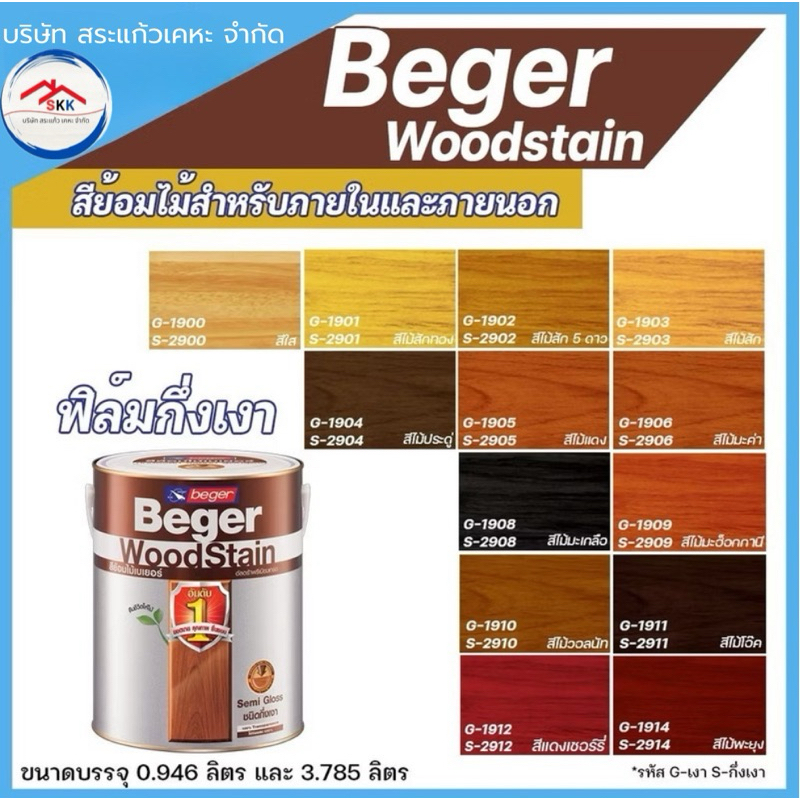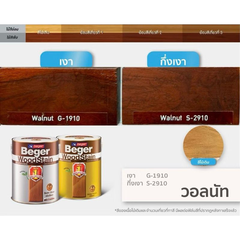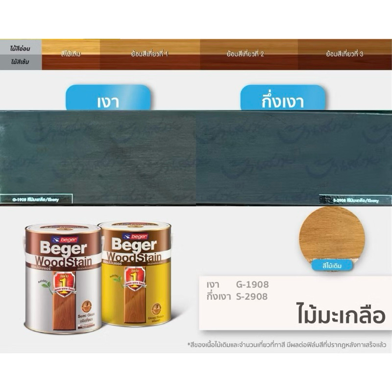 Beger WoodStain สีย้อมไม้ กึ่งเงา ทาผนังภายในและภายนอก 1 แกลลอน 3 ลิตร สีทาผนังไม้ ผนังไม้ สีทาไม้