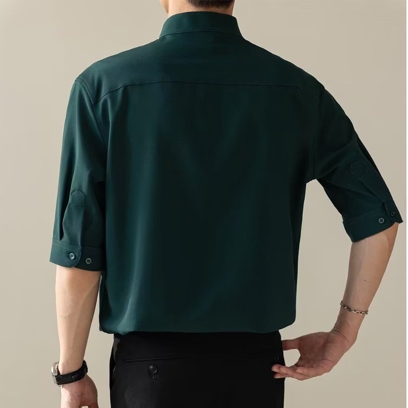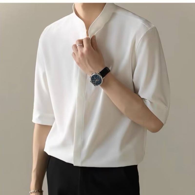 เสื้อผ้าไหมพรมคลายร้อนแบบหลวม แขน 3/4 คอจีน ไซส์ S-5XL เหมาะสำหรับธุรกิจและลำลอง