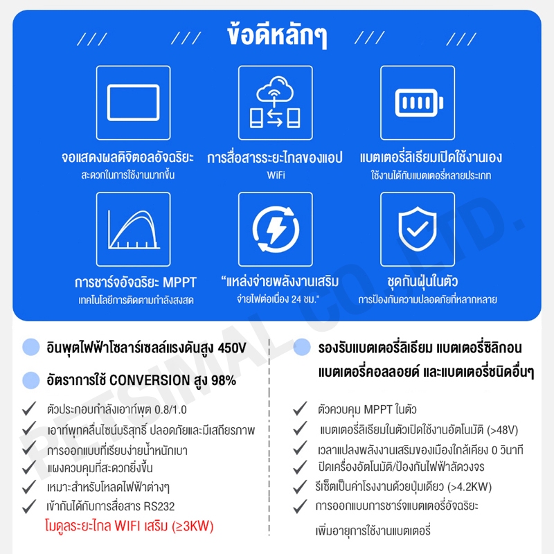 HiLiteยอดขายอันดับ1 อินเวอร์เตอร์ หม้อแปลงเทอร์รอย Inverter off grid โซล่าเซลล์ พีคได้3เท่า เทอรอยด์ เพียวไซน์ pure sine