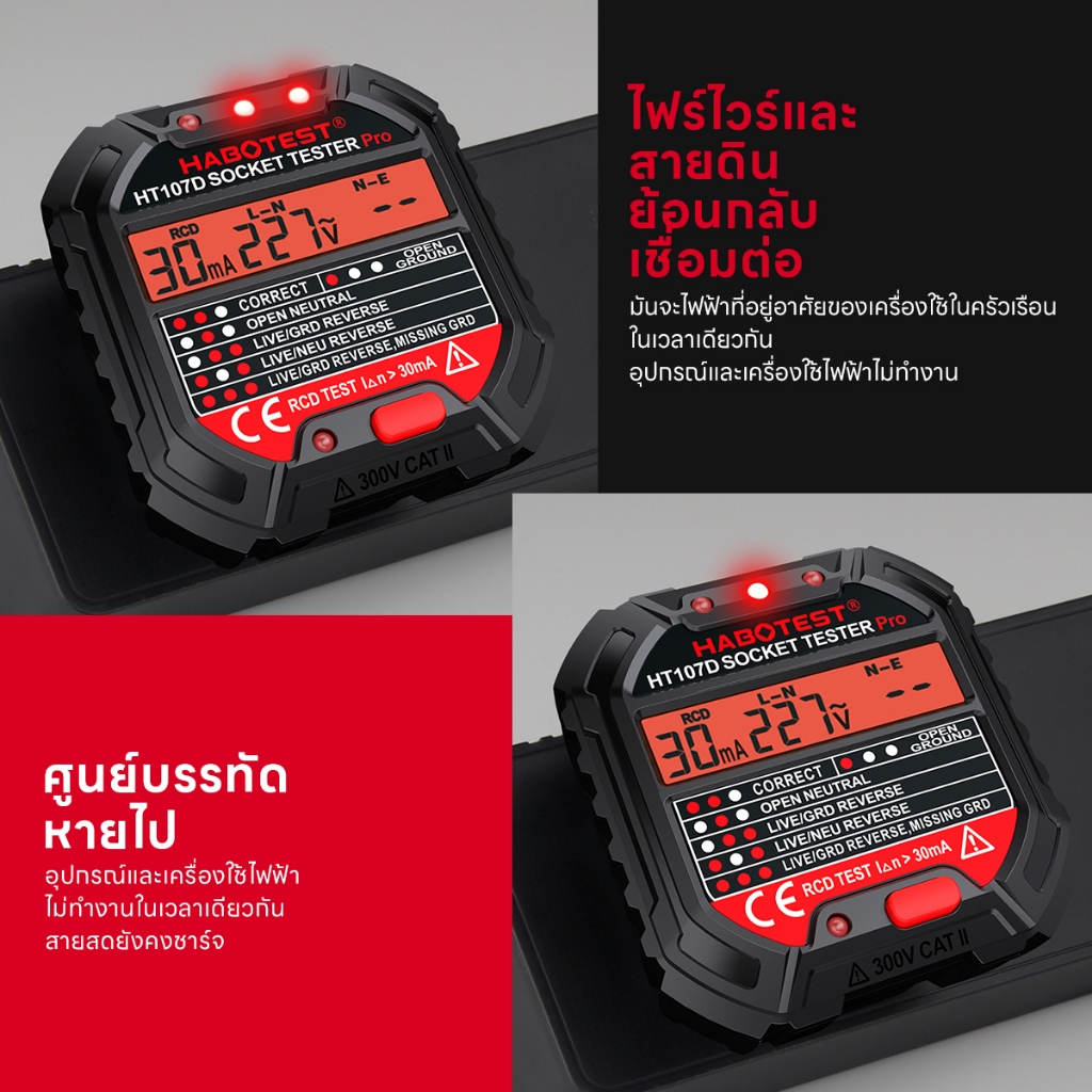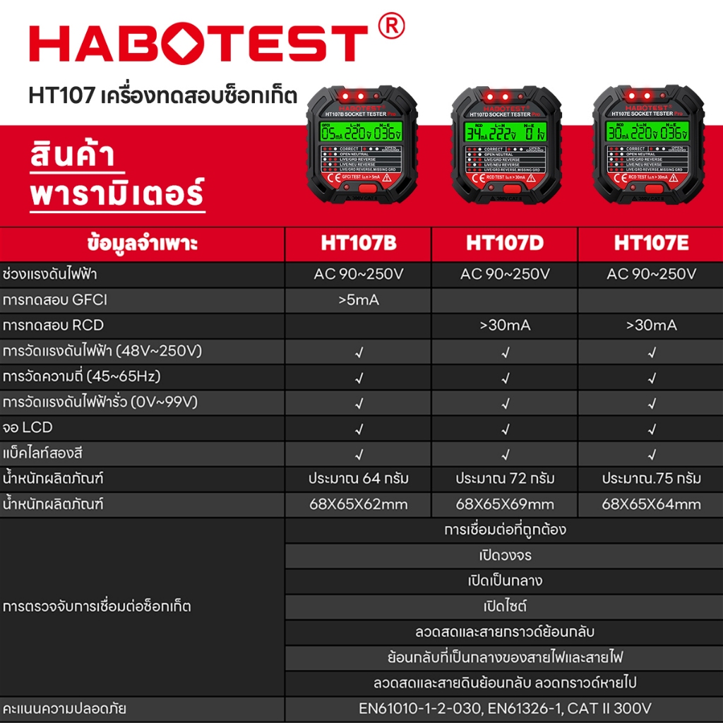 HABOTEST HT107B เครื่องเทสปลักไฟ ตัวเทสต์ปลั๊ก SOCKET TESTER Thunelectric ปลั๊กเทสไฟ มัลติมิเตอร์ดิจิตอล