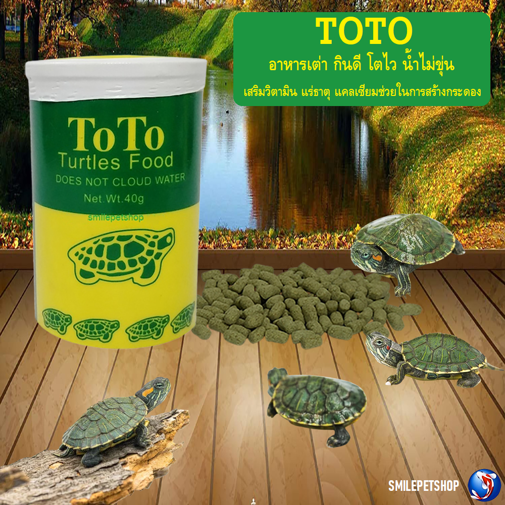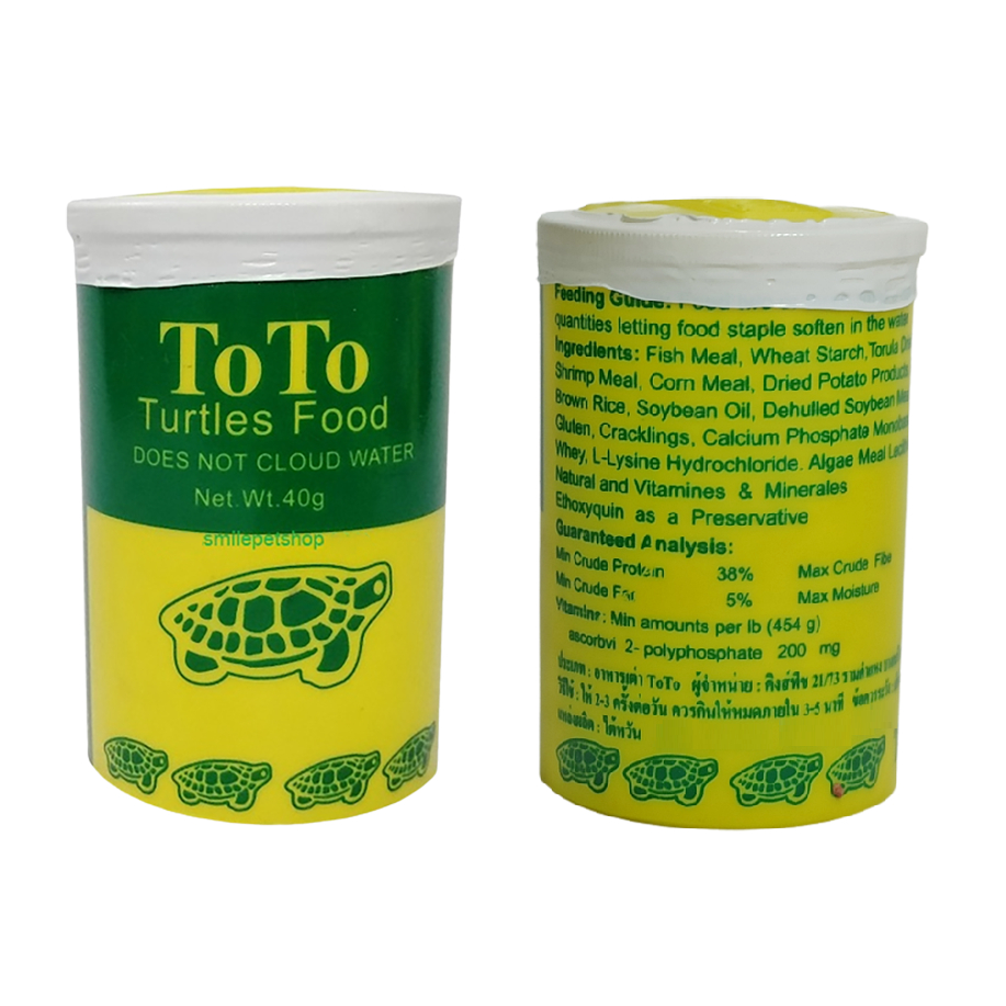 TOTO Turtles Food 40 g.(อาหารเต่า กินดี โตไว น้ำไม่ขุ่น เสริมวิตามิน แร่ธาตุ แคลเซียม ช่วยในการสร้างกระดอง)