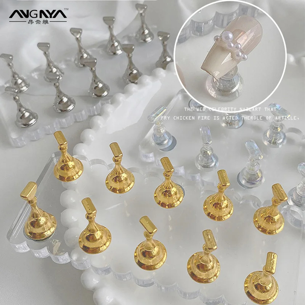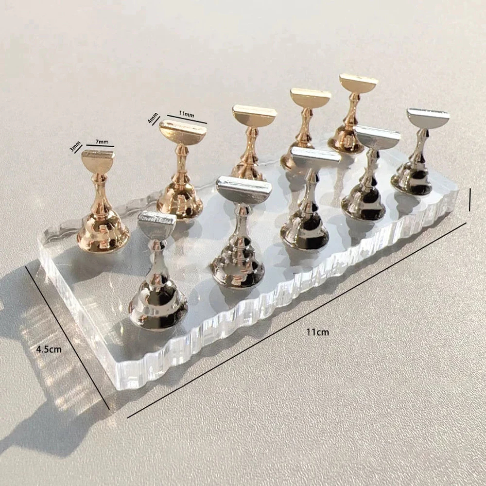 ANGNYA ชั้นวางเล็บปลอมอะคริลิค 1 ชุด ฐานวาง 1 ชิ้น ที่วางปลายเล็บ 10 ชิ้น