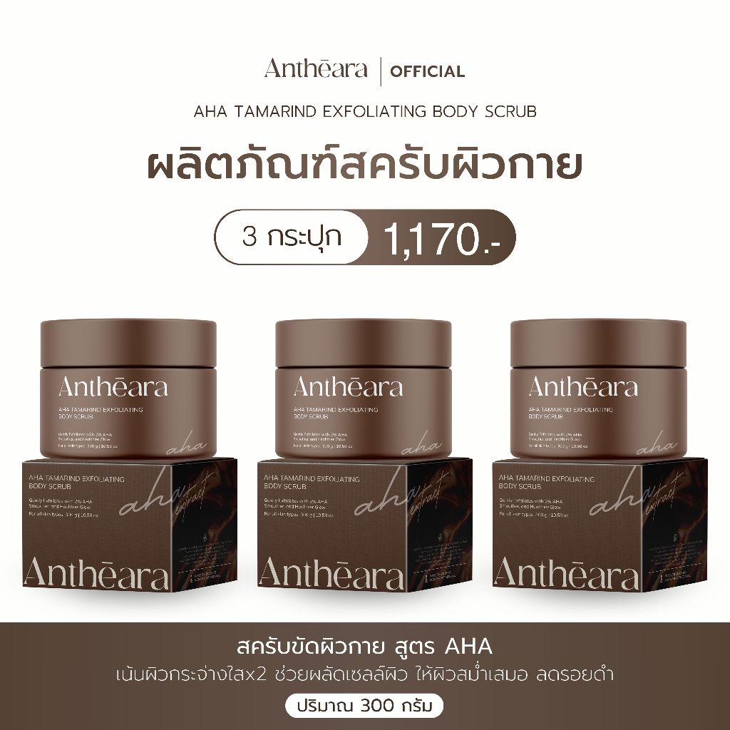 Antheara สครับขัดผิว สูตร AHA - เน้นผิวกระจ่างใสx2 ช่วยผลัดเซลล์ผิวแบบเร่งด่วน