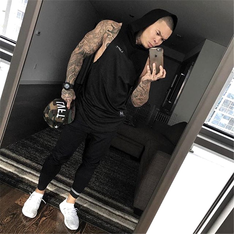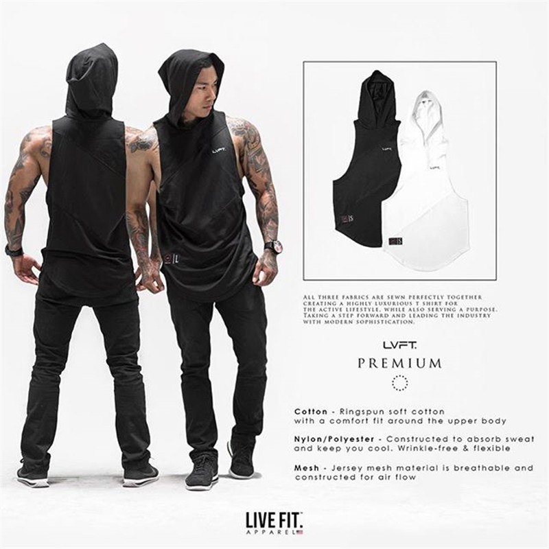 Live FIT เสื้อกีฬา เสื้อกล้าม มีฮู้ด แขนกุด แห้งเร็ว สําหรับผู้ชาย
