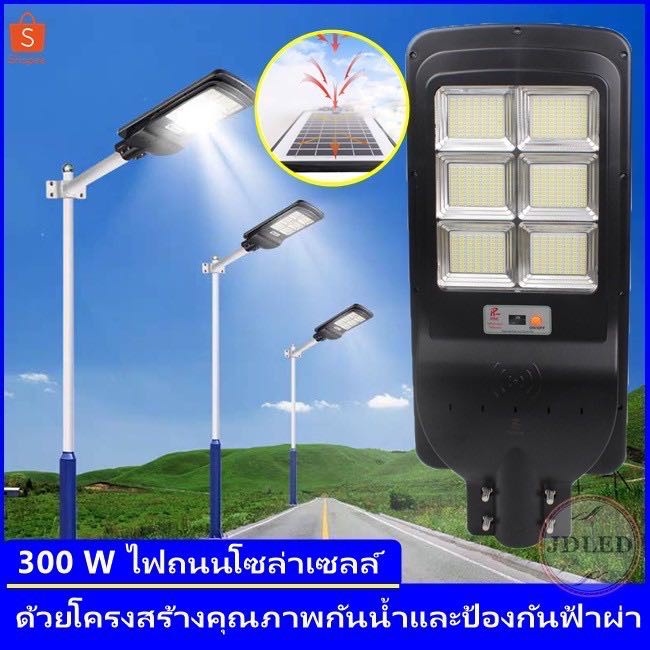 Solar Light LED ไฟโซล่าเซลล์ LED แสงสีขาว โคมไฟถนนสปอร์ตไลท์ 300W